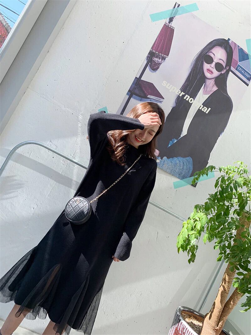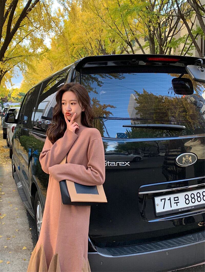 【新作】【送料無料】 秋冬女性セータードレスタートルネックフルスリーブスリムストレッチVestidosサイドスプリットミディニットドレス2019 オータム 秋物 ウィンター 冬物 12b111983777310