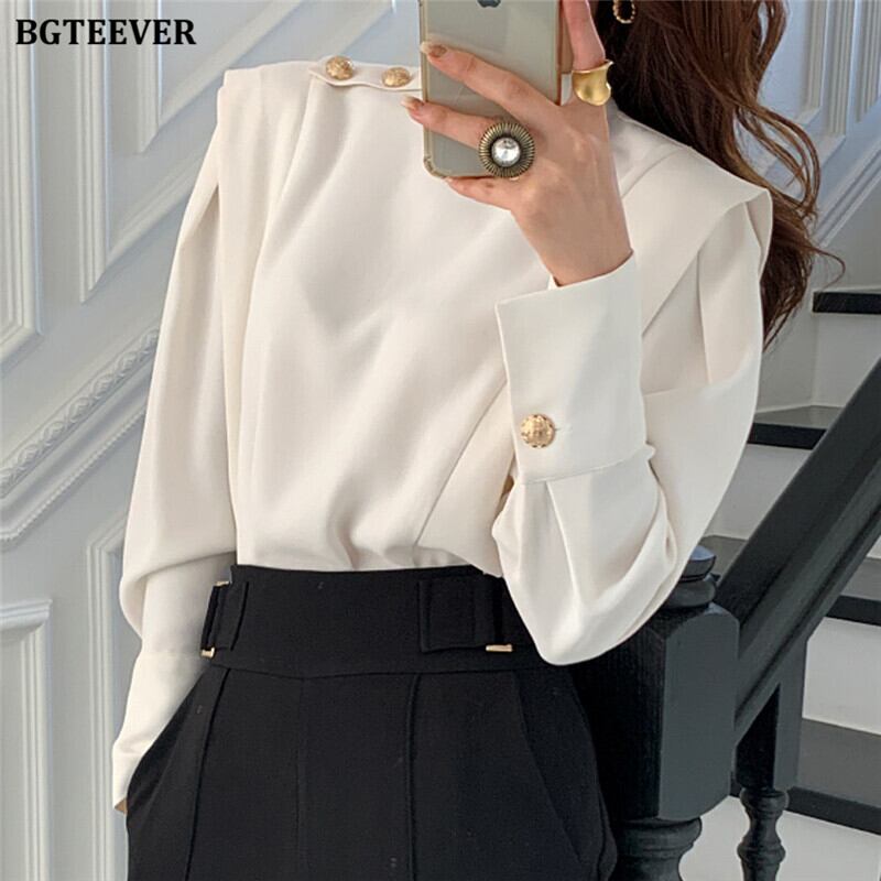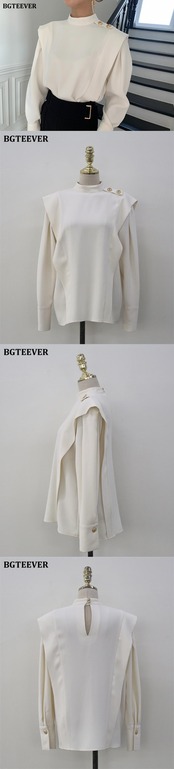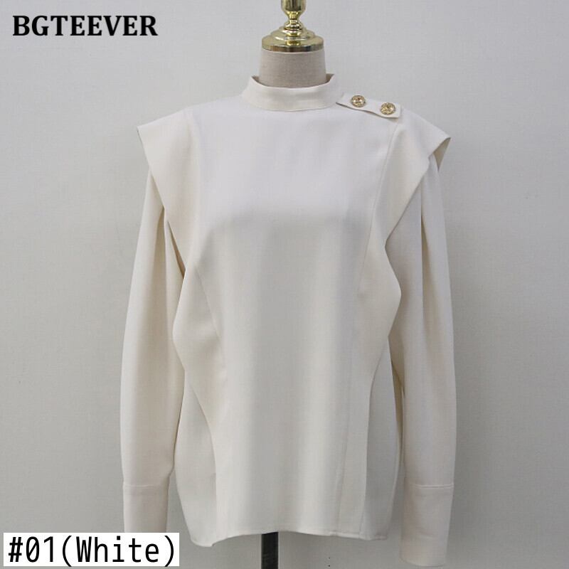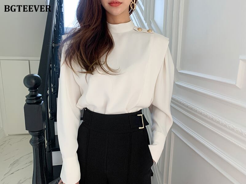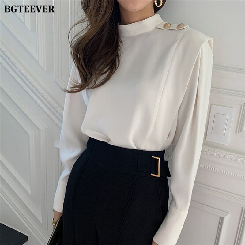 【新作】【送料無料】 BGTEEVERシックなオフィスの白いシャツスタンドカラーボタン女性の長袖ブラウストップス2020秋のルーズ ロング ホワイト オータム 秋物 会社 学校 通勤や通学にも 12b125183577299