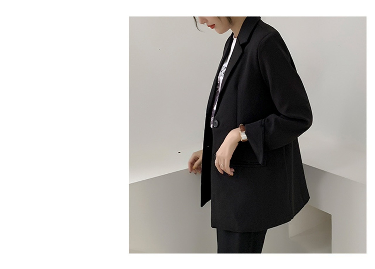 【新作】【送料無料】 ルーズシングルブレスト黒人女性ブレザー秋シックなアウタージャケットスプリットスリーブブレザーコート2019 ブラック オータム 秋物 12b192422395721