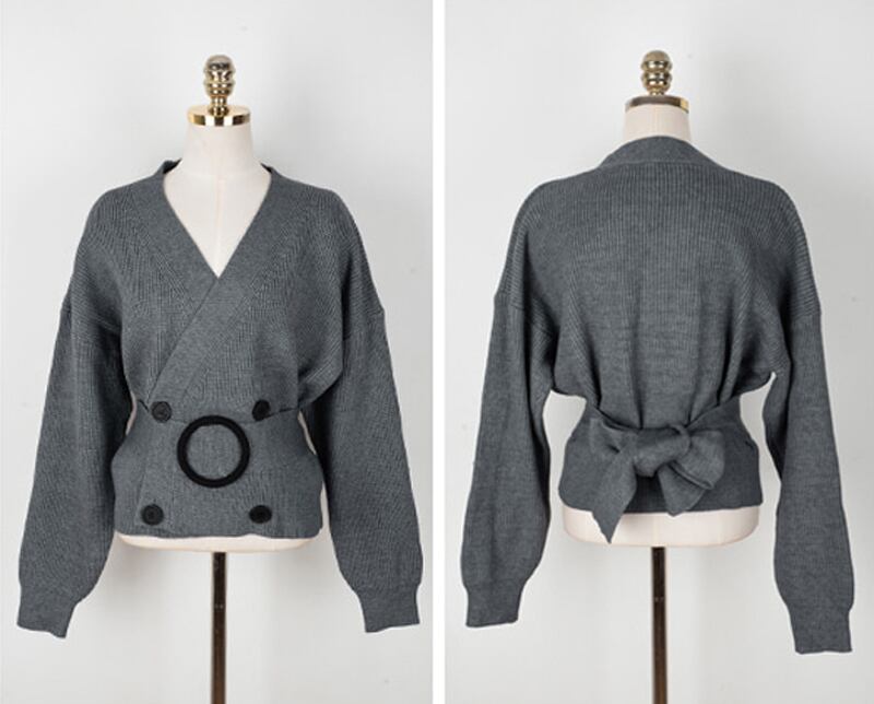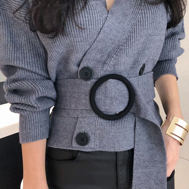 【新作】【送料無料】 2020年秋Vネックフルスリーブショートニットオープンステッチダブルブレストレディースセーターカーディガンサッシジャンパー オータム 秋物 12b197731822594