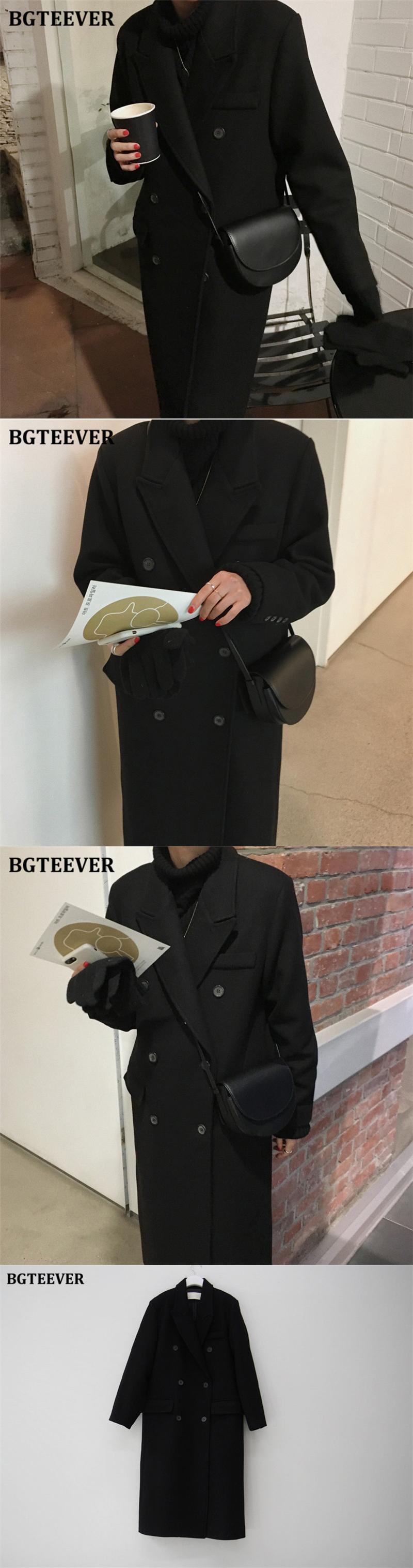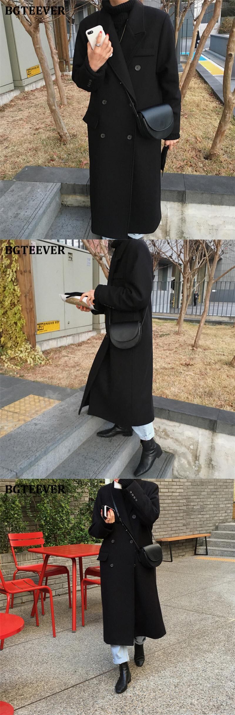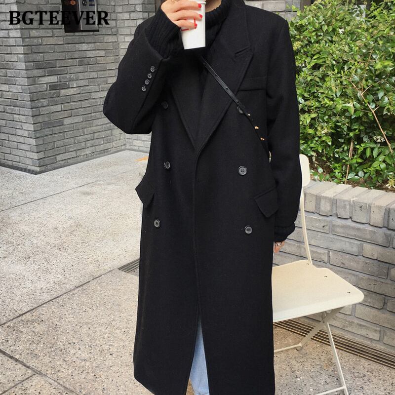 【新作】【送料無料】 BGTEEVERスタイリッシュなダブルブレストロングウールコート2020Winter Thicken Loose Women Blend Overcoats Black Outwear ブラック ウィンター 冬物 12b181761170260