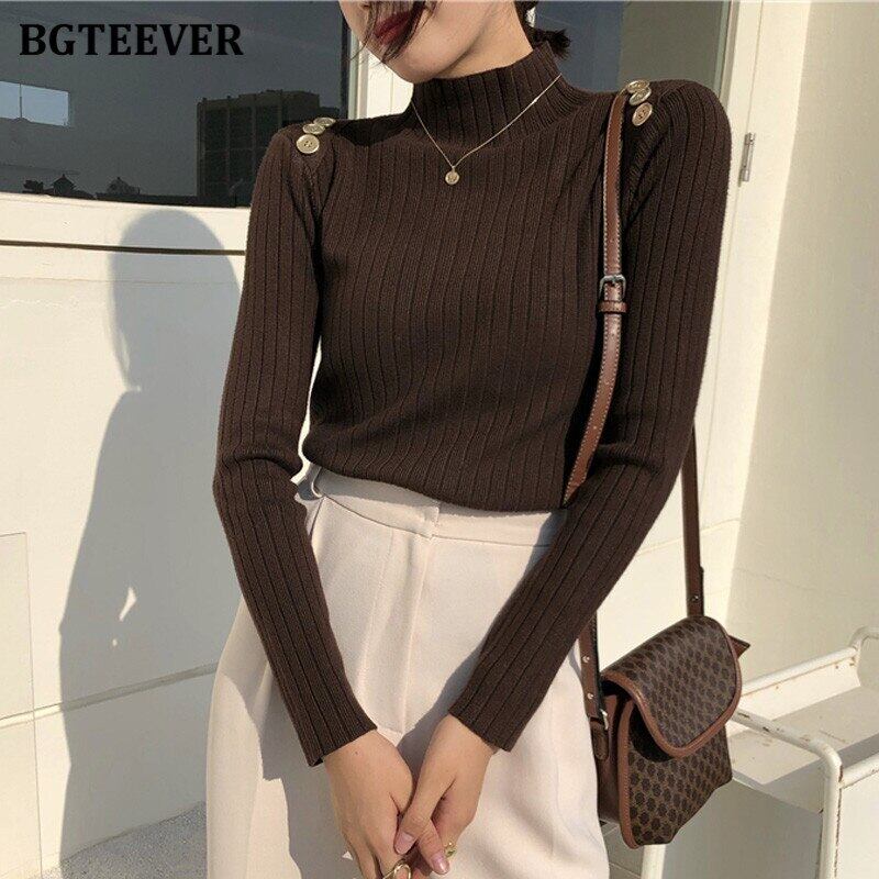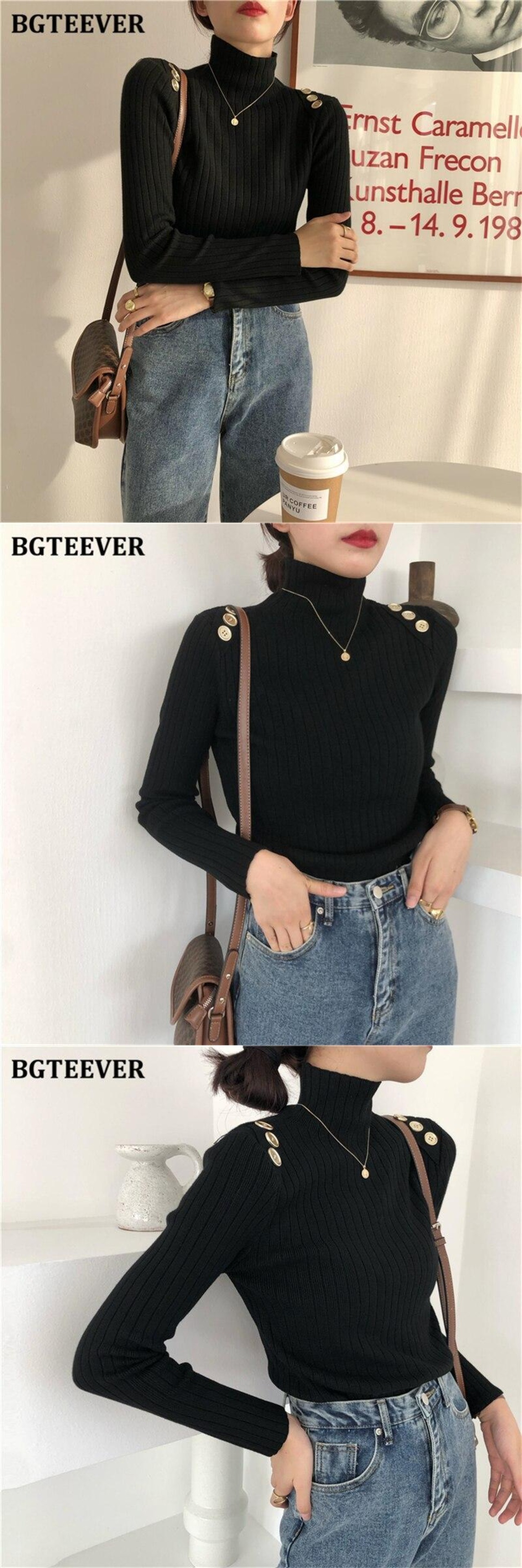 【新作】【送料無料】 BGTEEVERヴィンテージタートルネックレディーススリムセータープルオーバー長袖ニットジャンパー2020秋冬ニットウェア ロング オータム 秋物 ウィンター 冬物 ビンテージ 12b187318060035