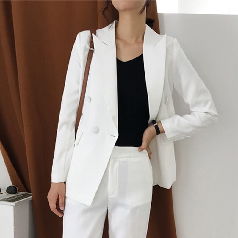 【新作】【送料無料】 オフィスホワイトパンツスーツレディースダブルブレザージャケット&ウエストパンツ2019ワークウェア2点セット 会社 学校 通勤や通学にも 12b194875464011