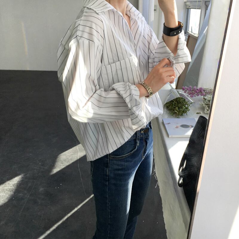【新作】【送料無料】 ゆったりとした女性のシャツ2019女性のブラウス長袖ポケットストライプの白いシャツ女性のトップスblusasmujer de moda 2019 ロング ホワイト 12b195111302949