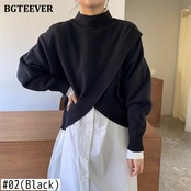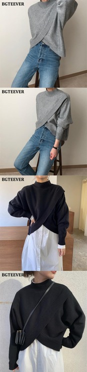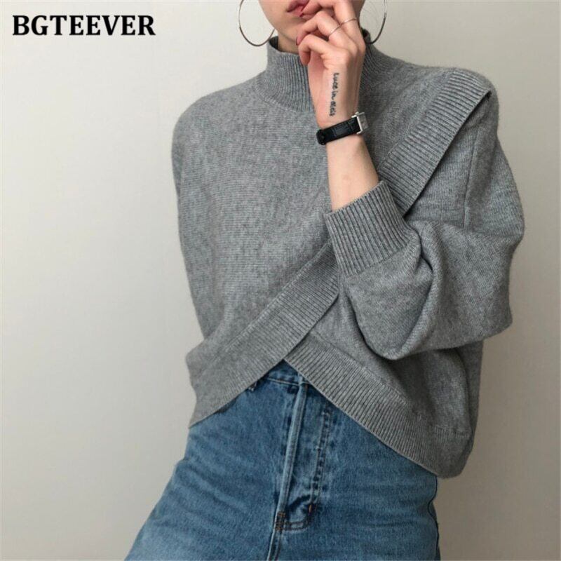 【新作】【送料無料】 BGTEEVERハーフタートルネックレディースセータージャンパー2020秋冬ニットクロススプリットルーズニットプルオーバー オータム 秋物 ウィンター 冬物 12b16905688386
