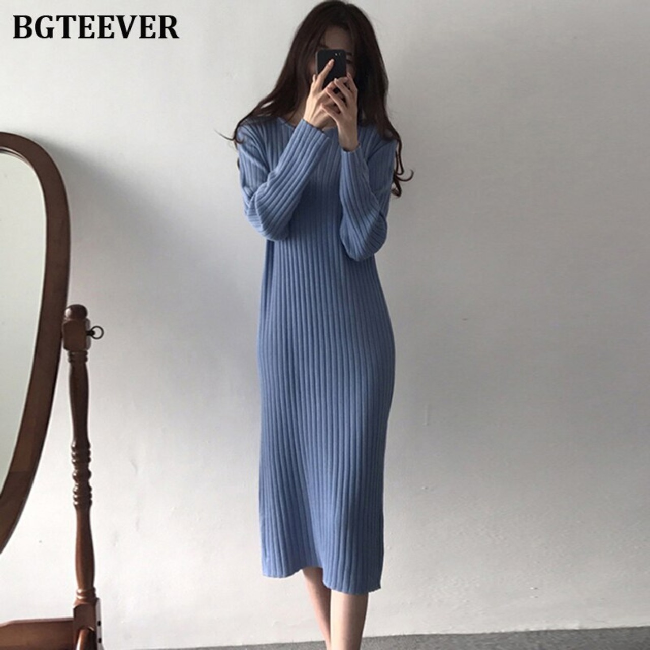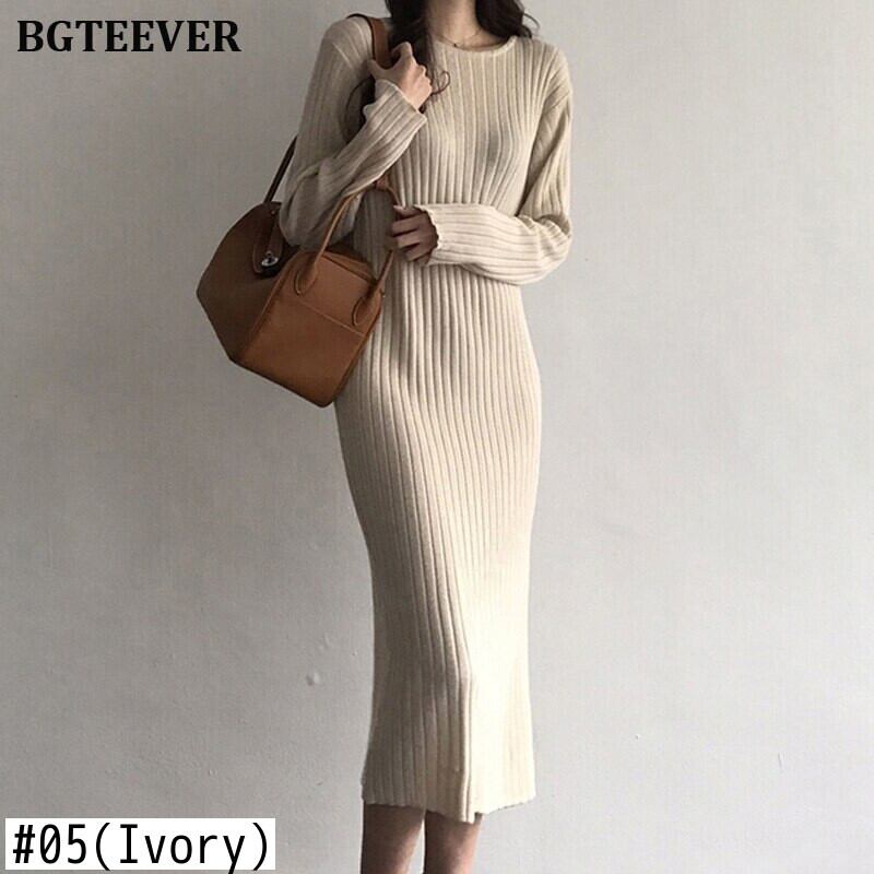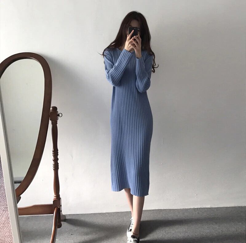 【新作】【送料無料】 Oネックロングレディースセータードレス2019秋冬ドレスルーズニットドレスプルオーバーニットVestidos オータム 秋物 ウィンター 冬物 12b120760987874
