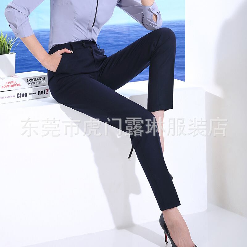 【新作】【送料無料】 秋と春の新しいスタイルのドレープ女性用ズボン、ミッドハイウエスト、マイクロフラップ、非弾性スーツのズボン、プラスサイズのカットオフプロパンツ-アリババ エラスティック 伸縮 大きめサイズ スプリング 春物 オータム 秋物 12b346155419873