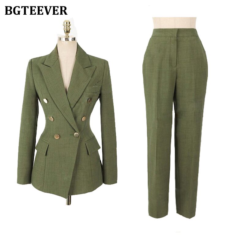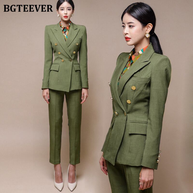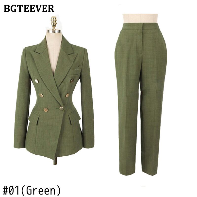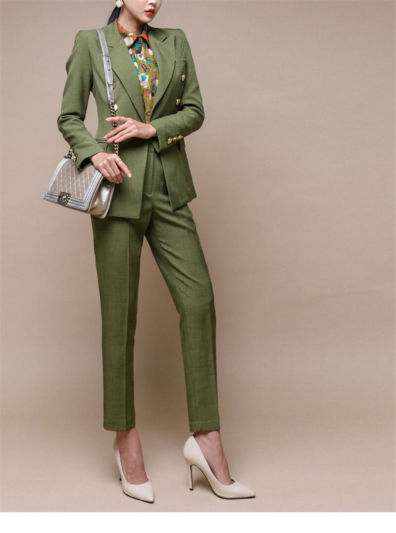 【新作】【送料無料】 グリーンレディースブレザーセットダブルブレストスリムジャケット&ペンシルパンツレディースパンツスーツワークスーツ2点セット 12b183960094591