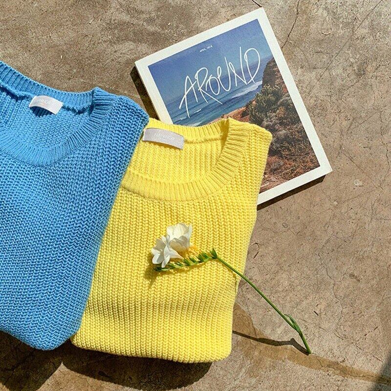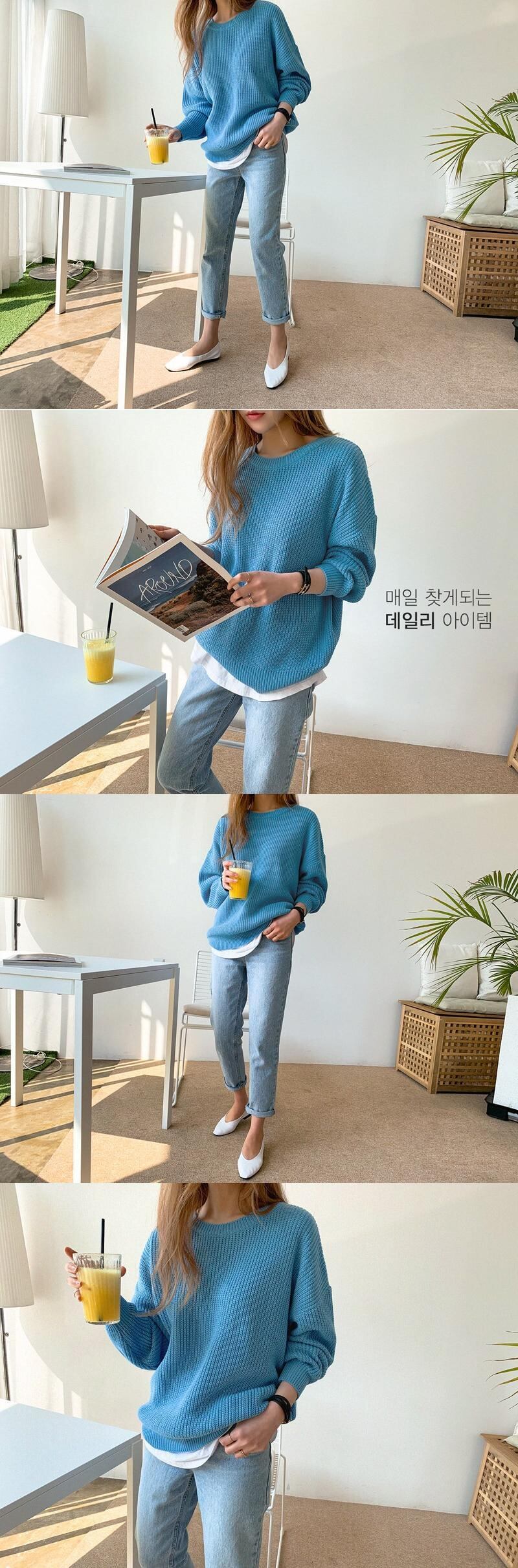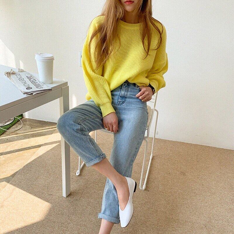 【新作】【送料無料】 2020ブルーOネックルーズレディースセーターフルスリーブニットプルオーバー秋冬ソリッドニットトップスファム オータム 秋物 ウィンター 冬物 フェミニン ソリッドカラー 12b121030189110