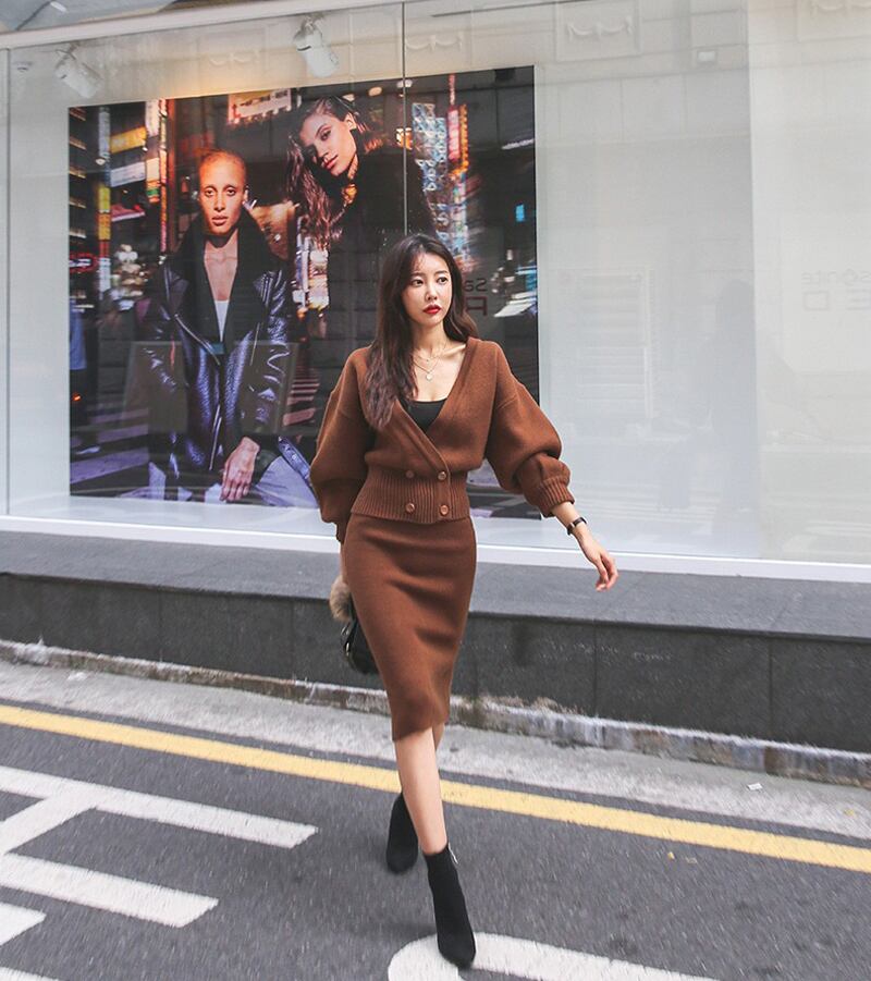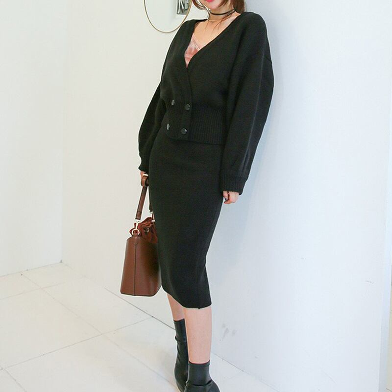 【新作】【送料無料】 BGTEEVER秋冬Vネックランタンスリーブカーディガン&ヒップパッケージスカートニットレディース2点セットセータースーツ2020 オータム 秋物 ウィンター 冬物 12b148132962378