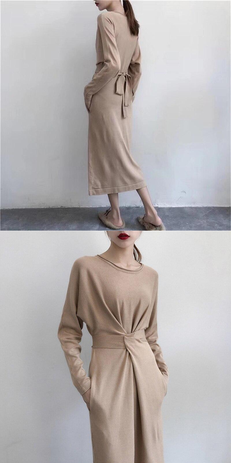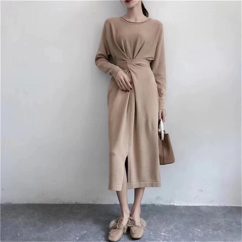 【新作】【送料無料】 ヴィンテージスリムウエストレディースセータードレスシックなレースアップスプリットジャンパーVestidosレディースボディコンニットドレス2019 ビンテージ 12b135861837761