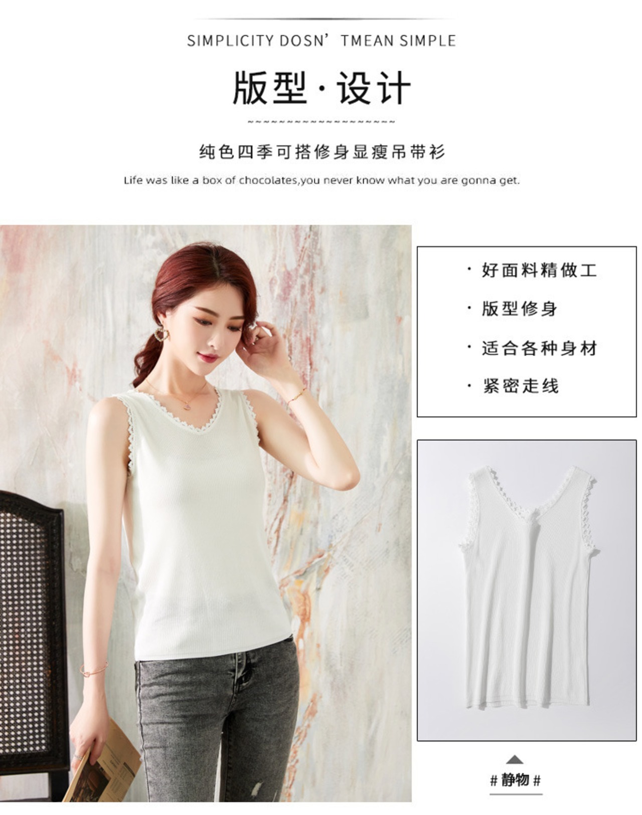 【新作】【送料無料】 本物の小さなスリングノースリーブベスト女性は外に落ちるルーズスタイルの気質VネックニットボトミングシャツトップV-アリババ 12b226418022127