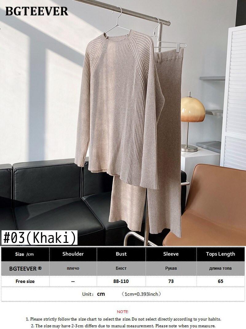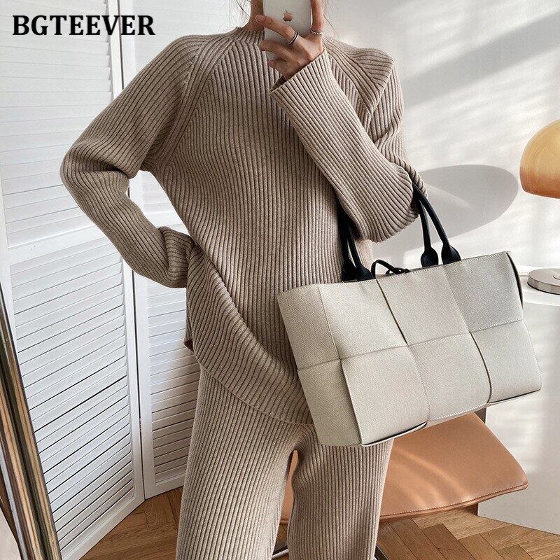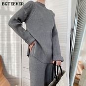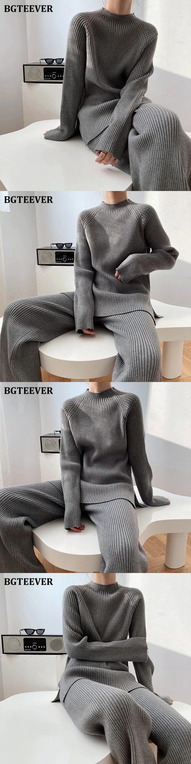 【新作】【送料無料】 BGTEEVER Winter Thicken Knitted 2 Pieces Set Women O-neck Split Jumpers&Wide Leg Sweater Pants 2020 Sweater Set ウィンター 冬物 Oネック ワイドレッグ ワイドパンツ 12b176400134807