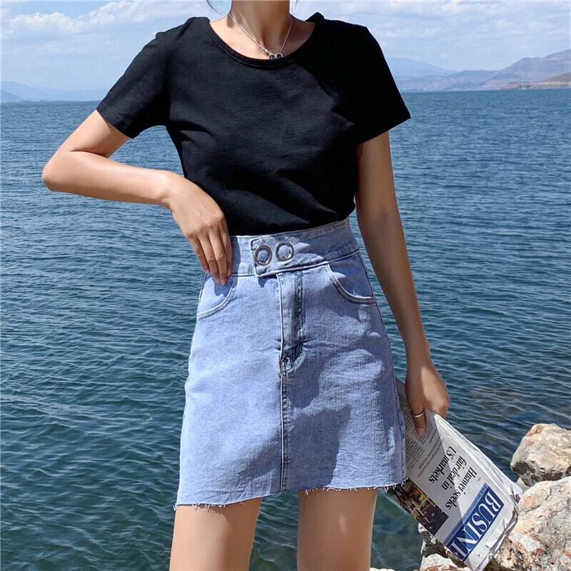 【新作】【送料無料】 女性TelJeanスカートストリートウェアフリンジ裾ペンシルスカート2019ウエストデニムサマーボディコンミニスカートファム 夏物 フェミニン 12b120355310163