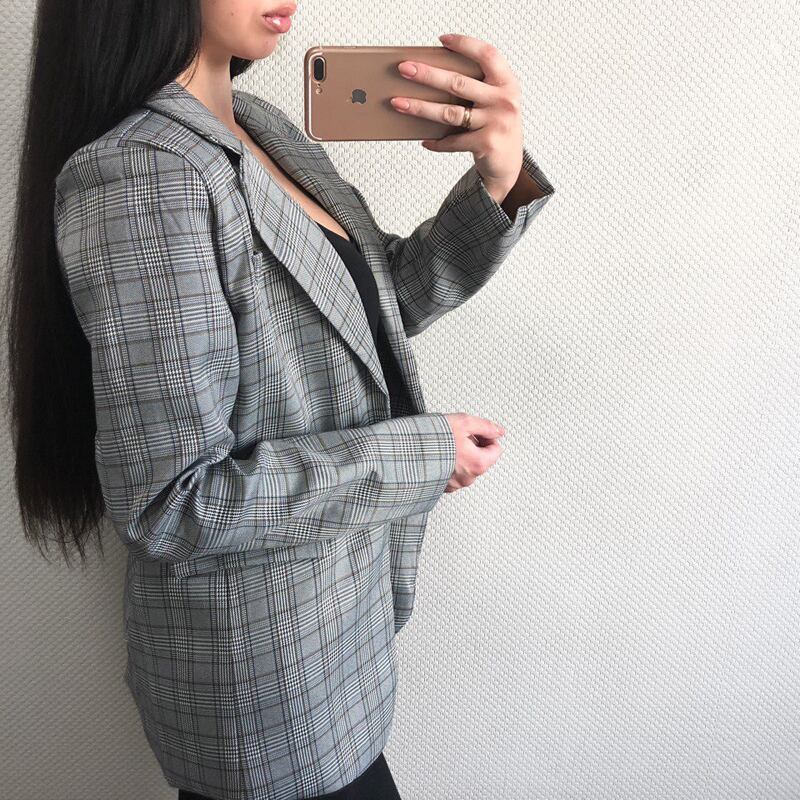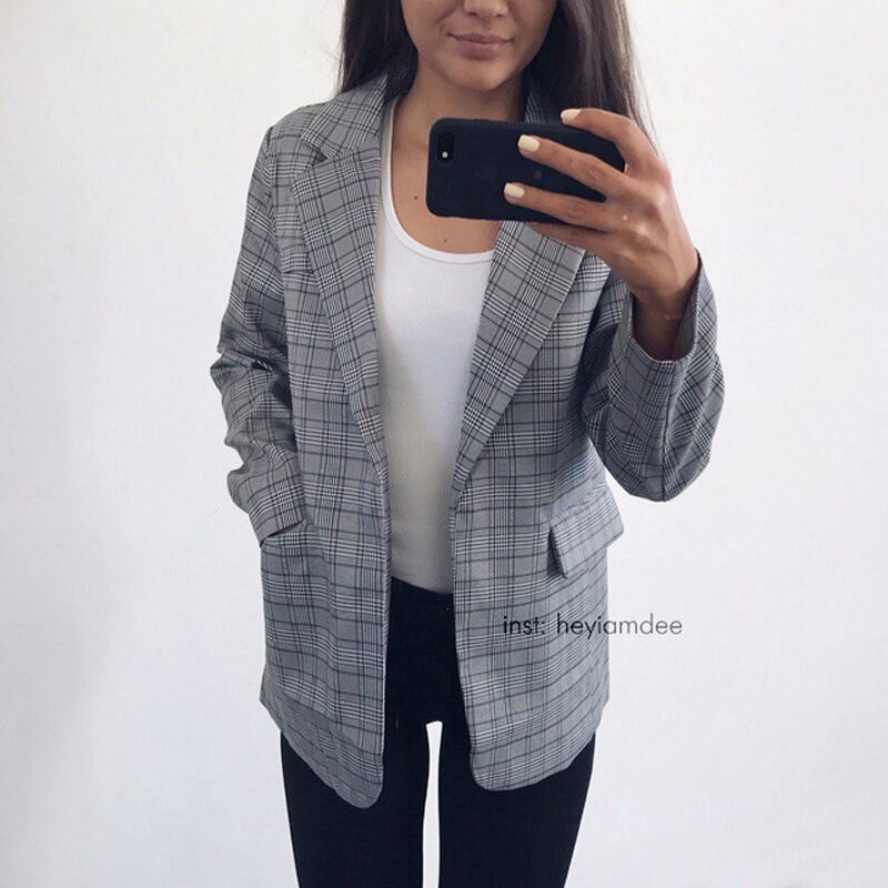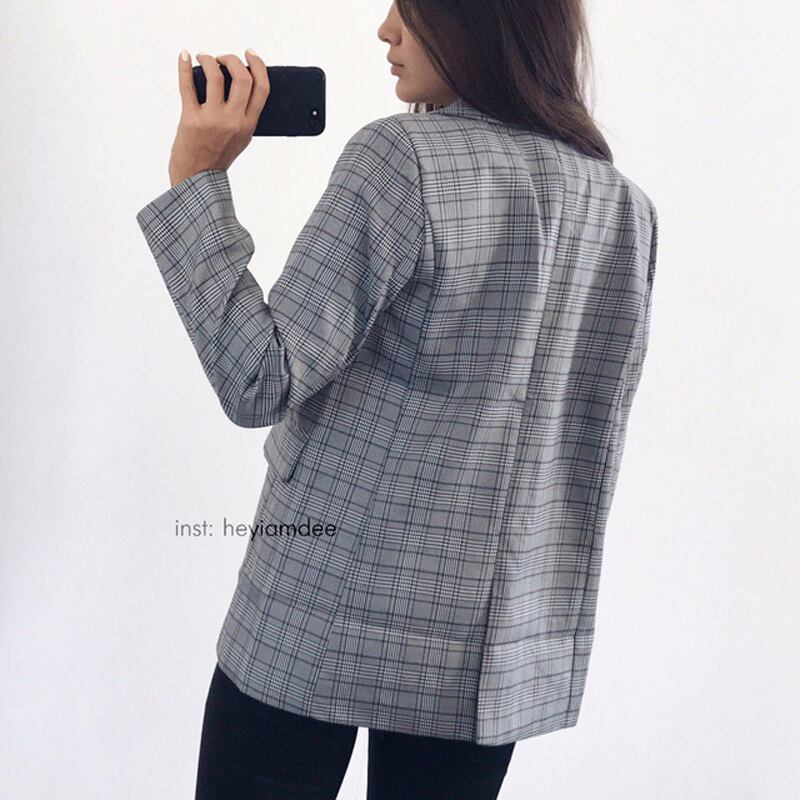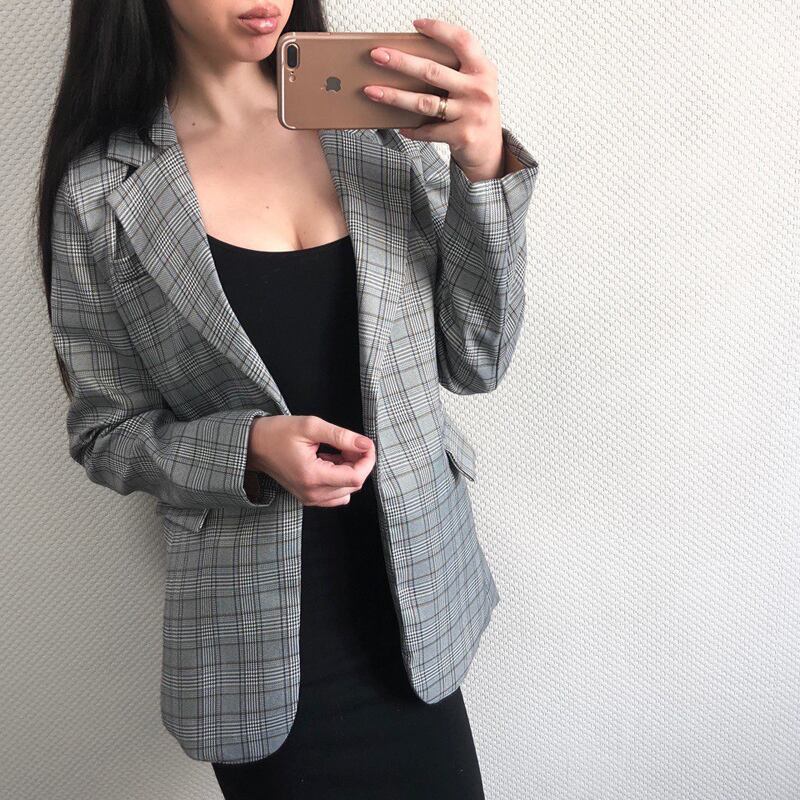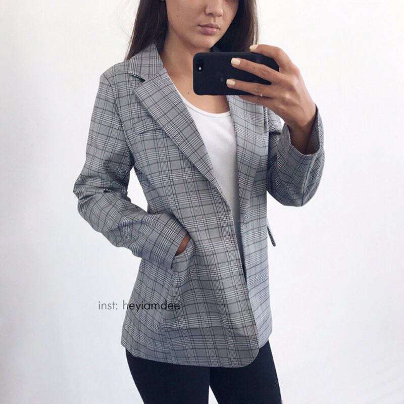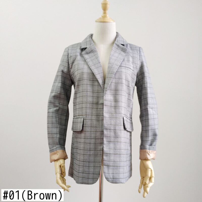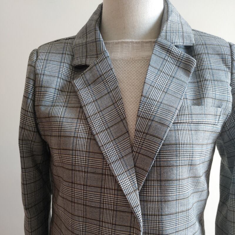 【新作】【送料無料】 2019 Women Grey Plaid Office Lady Blazer Jacket Notched Collar Work Suit Work Blazers Feminino 会社 学校 通勤や通学にも 12b147091111597