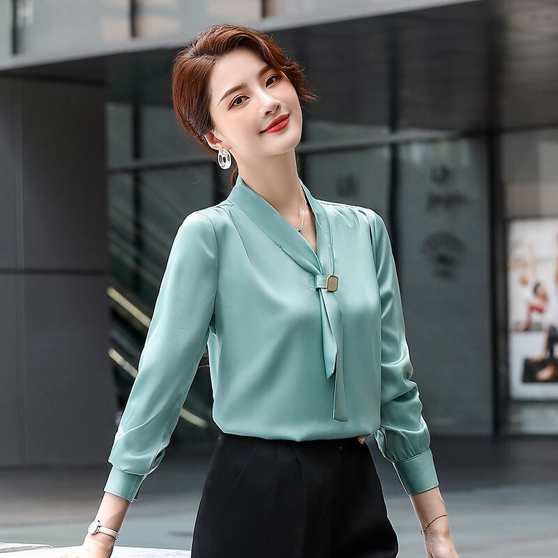 【新作】【送料無料】 Reals長袖無地シャツ女性気質プロフェッショナルプラスサイズブラウス2020春秋新作ルーズシャツ-Alibaba ロング 大きめサイズ スプリング 春物 オータム 秋物 ソリッドカラー 12b213240507698