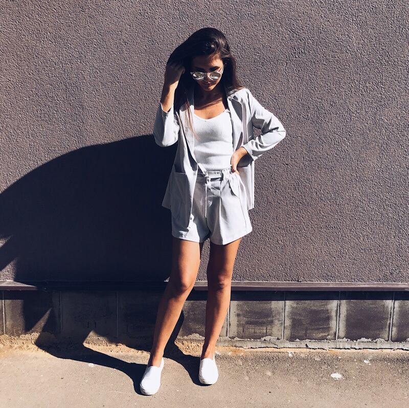 【新作】【送料無料】 コットンリネンサマースーツ2ピースセットトラックスーツ女性ルーズブレザー&ボウエラスティックウエストショートパンツスーツ リボン 伸縮 夏物 12b155840866155