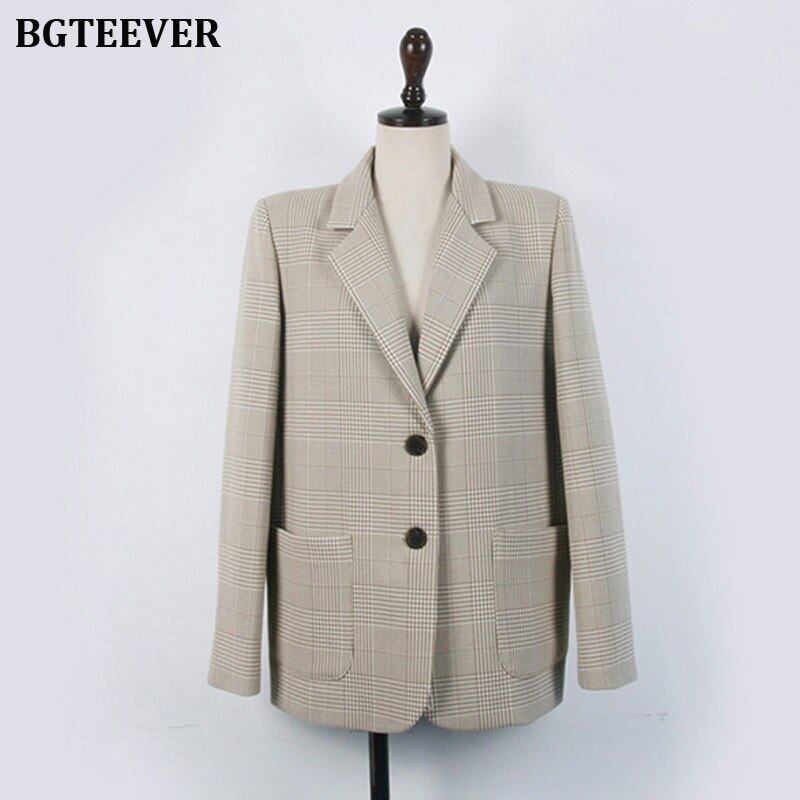 【新作】【送料無料】 ヴィンテージ女性チェック柄ブレザーコート千鳥格子パターンシングルブレストスーツジャケット2019秋のルーズブレザーアウター オータム 秋物 ビンテージ 12b161389460816