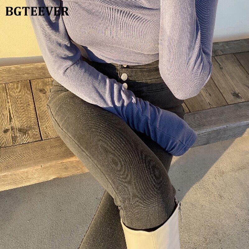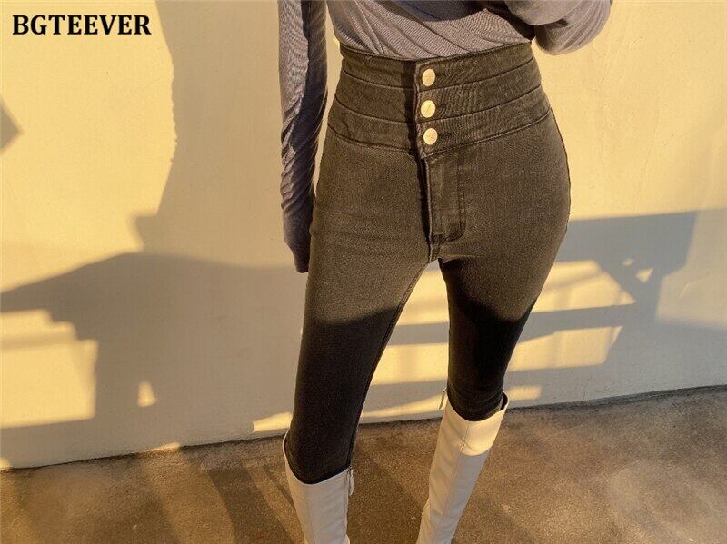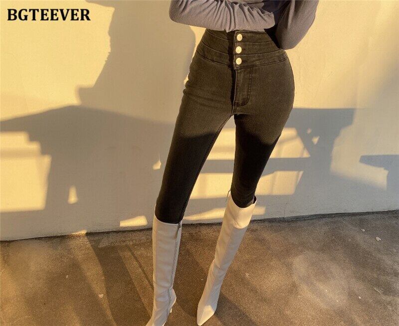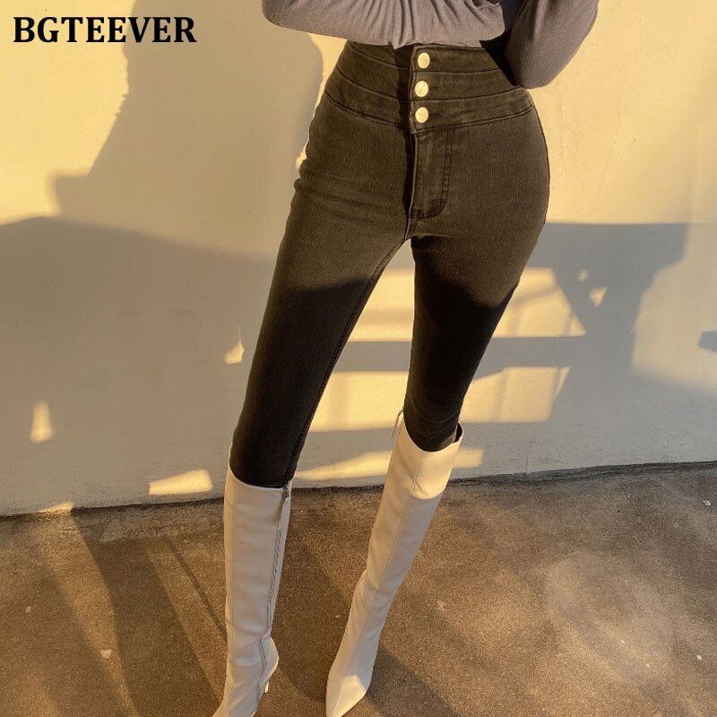 【新作】【送料無料】 春シングルブレスト女性スキニージーンズパンツウエストソリッドペンシルデニムパンツパンタロン スプリング 春物 ソリッドカラー 12b177475860625