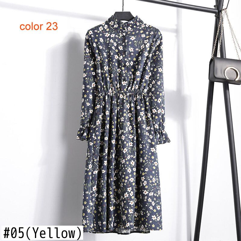 【新作】【送料無料】 コーデュロイソフトフローラルプリントレディース秋冬ドレススタンドカラーパーティールーズドレスエラスティックウエストビーチVestidos 伸縮 オータム 秋物 ウィンター 冬物 花柄 12b192405654188