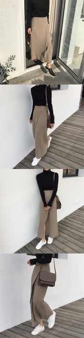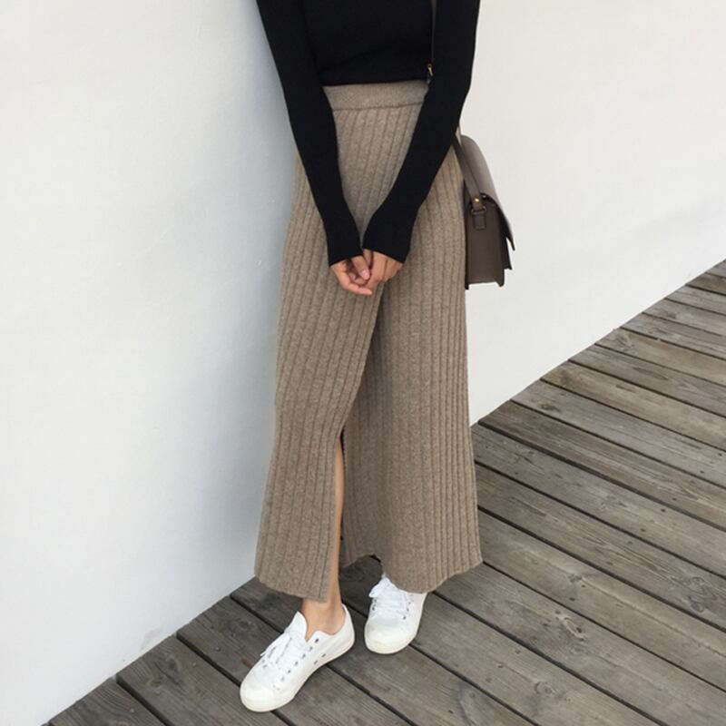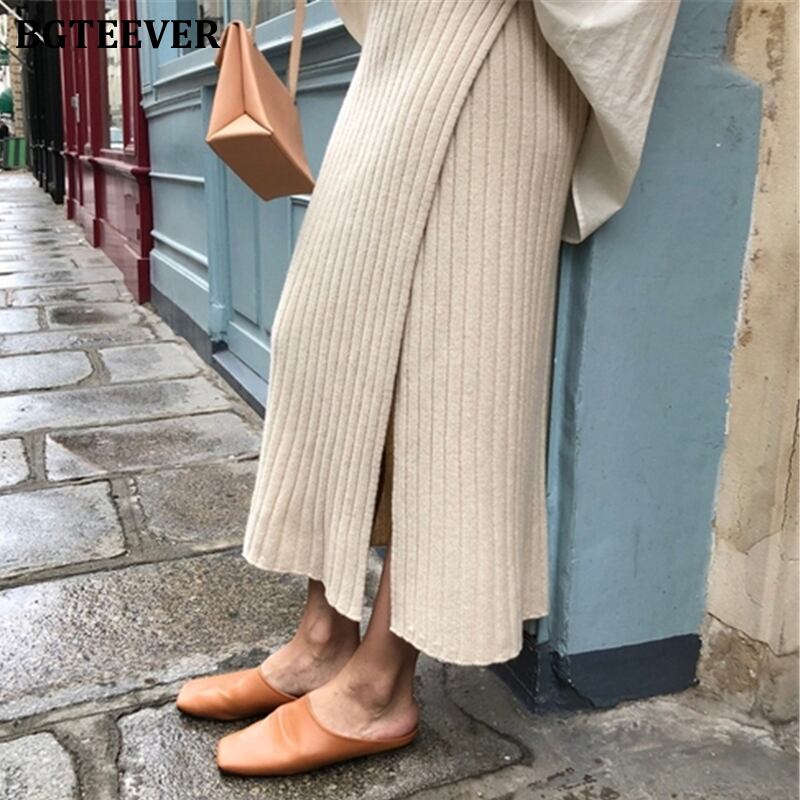 【新作】【送料無料】 BGTEEVER秋冬厚手女性ニットスカート伸縮性ウエストAラインフロントスプリットセータースカートスカート エラスティック オータム 秋物 ウィンター 冬物 12b12786613117