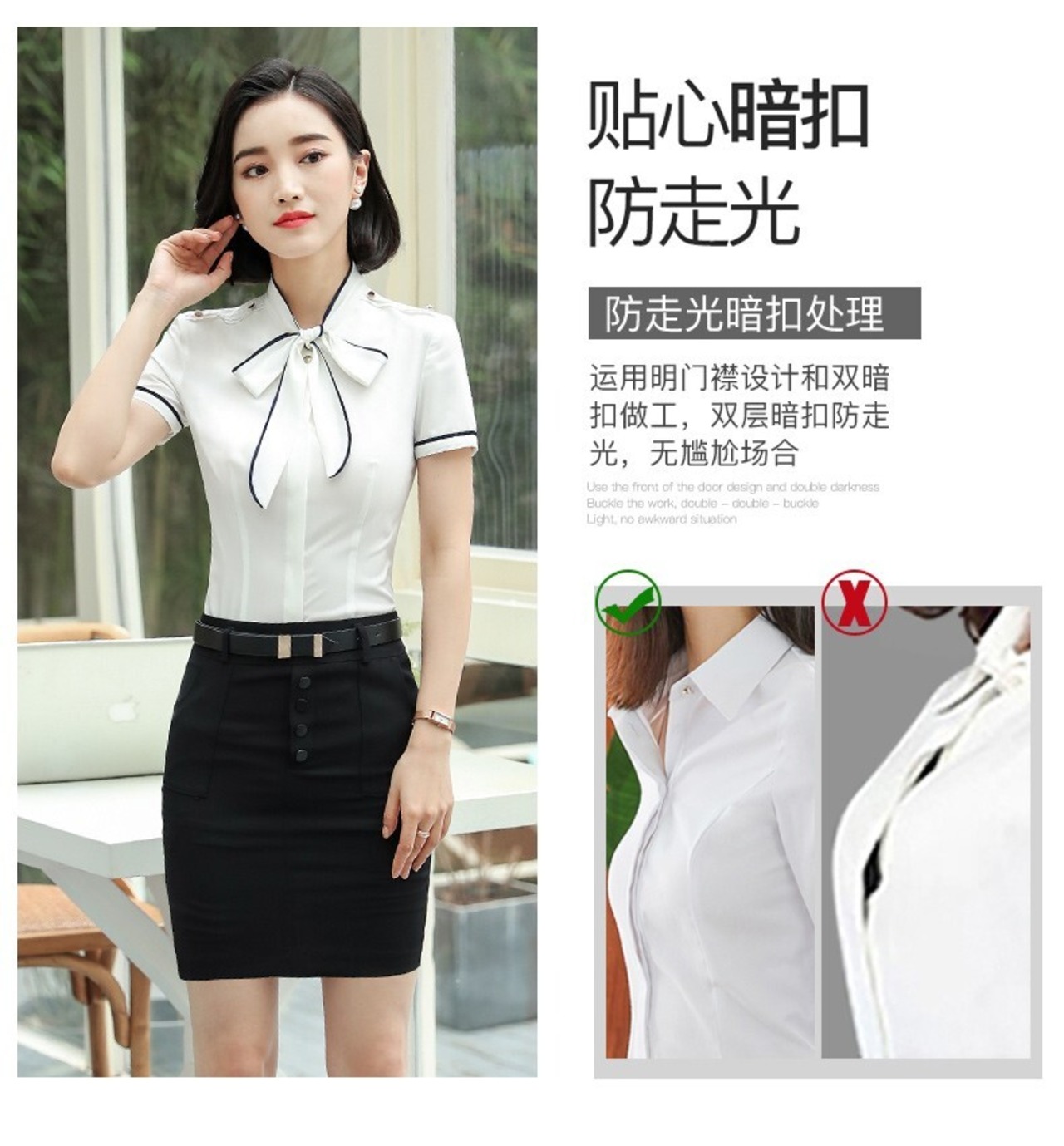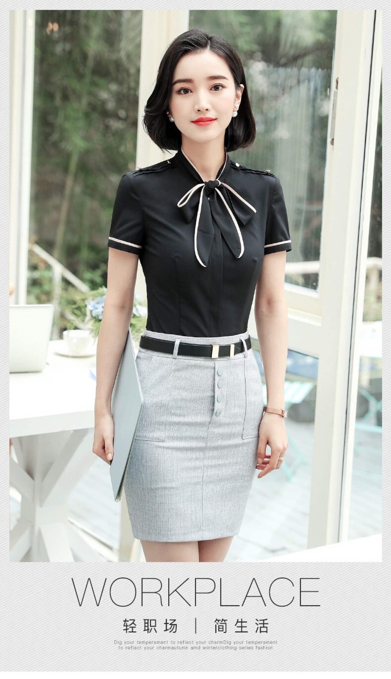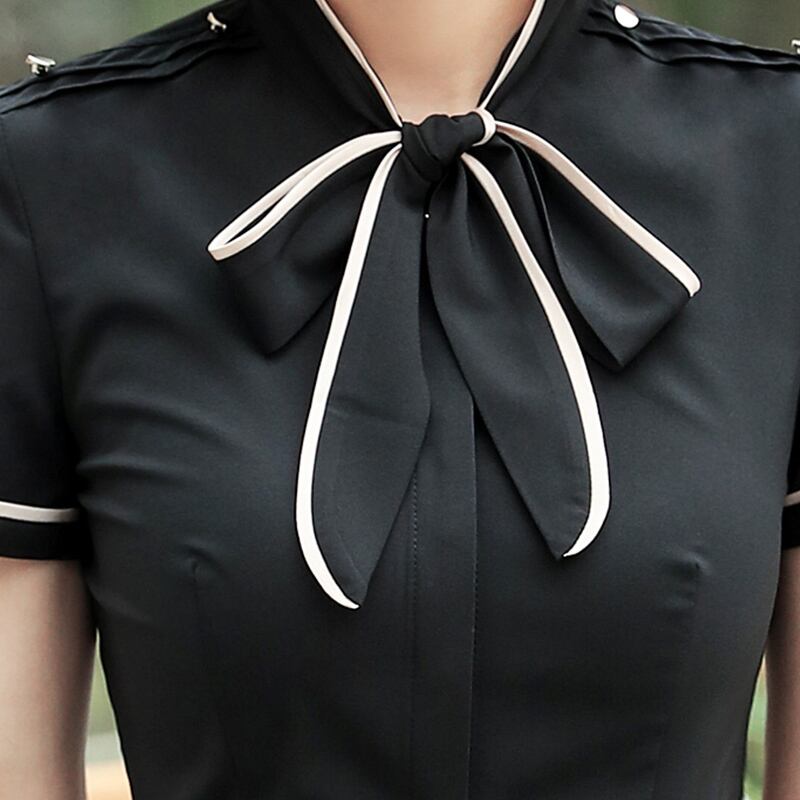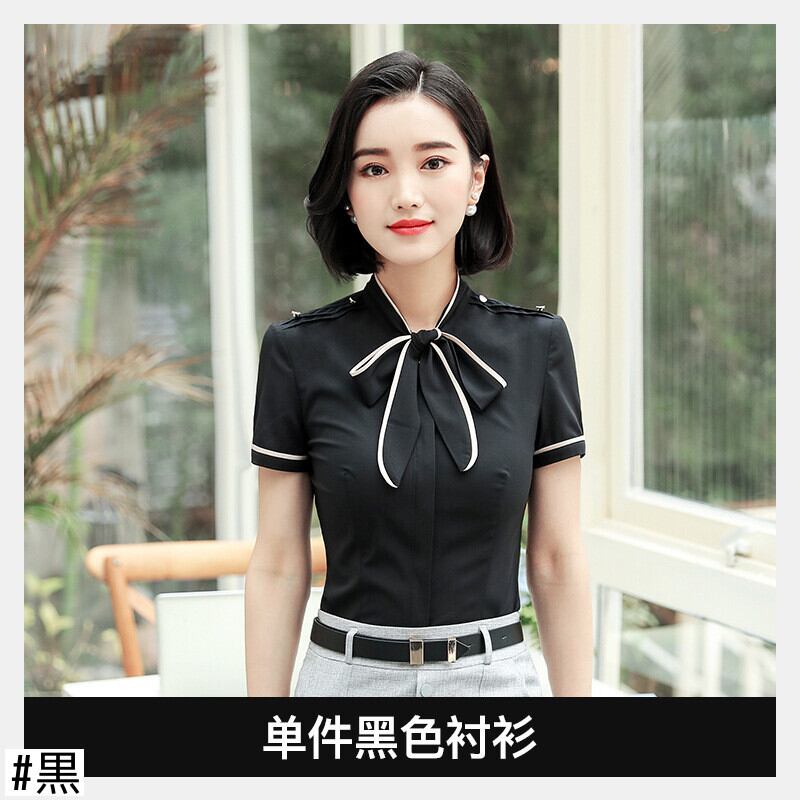 【新作】【送料無料】 夏の黒シフォンシャツ蝶ネクタイネクタイプロシャツ女性半袖スーツ弓シングルブレストブラウス女性-アリババ ショート ブラック リボン ハーフスリーブ サマー 夏物 12b322161419330