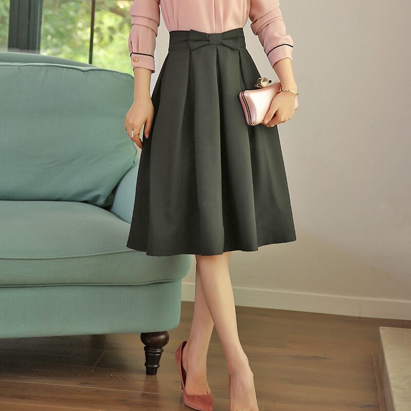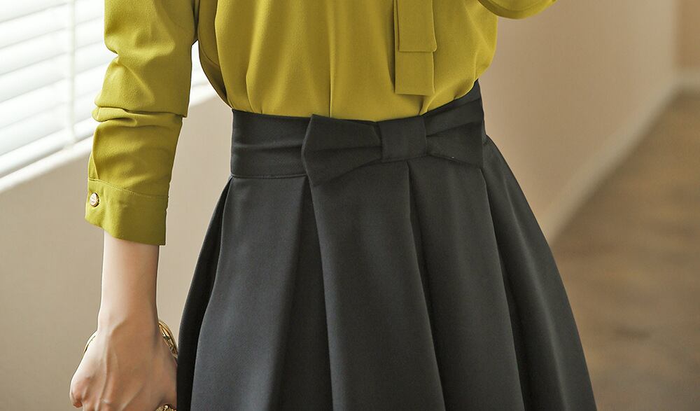 【新作】【送料無料】 2019新しい秋のスリムフィット黒の女性のスカートol気質の弓の装飾大きなスカート-アリババ ブラック リボン オータム 秋物 12b319007449863