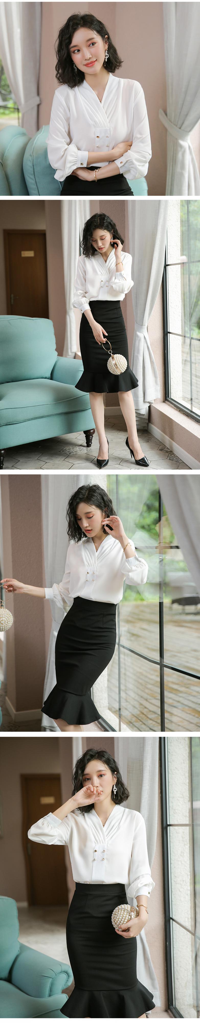【新作】【送料無料】 シフォンシャツ長袖女性2019新しいスタイル長袖オールプロフェッショナルウェアルーズシャツカジュアルマルホワイトスモールシャツ-アリババ ロング 12b315532934136