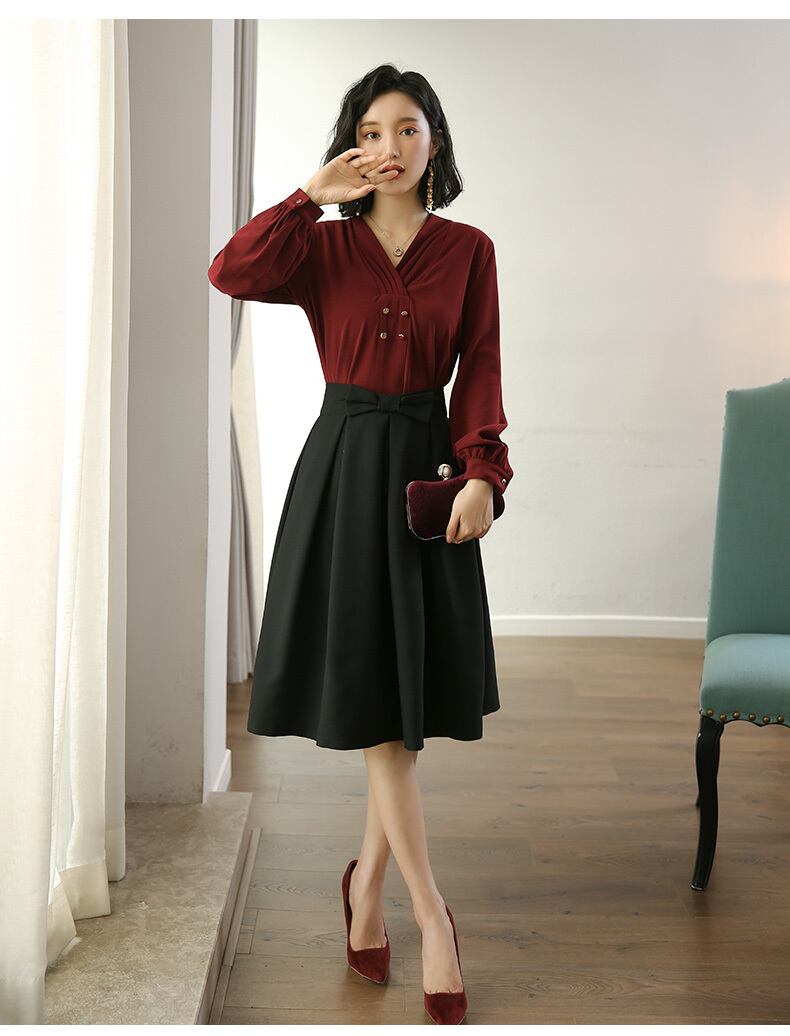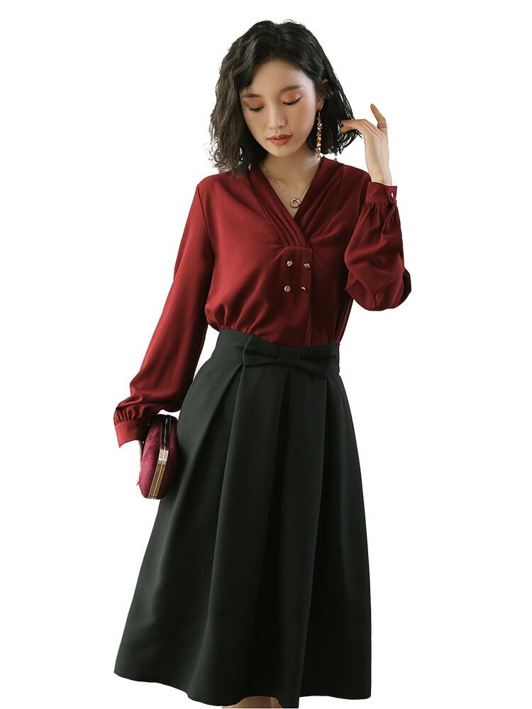 色:長袖白シャツ,バーガンディ長袖シャツ
