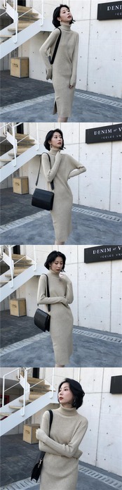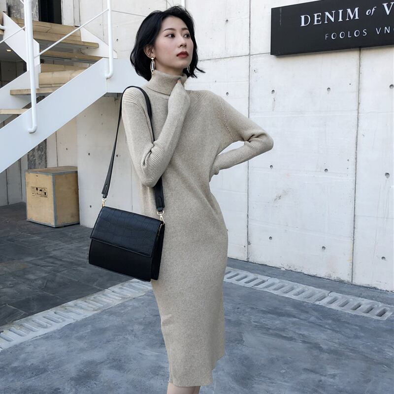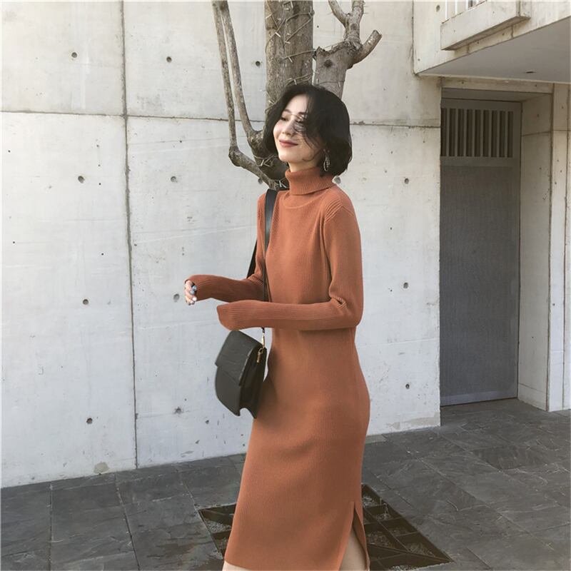 【新作】【送料無料】 BGTEEVRE秋冬ドレスタートルネックストレッチ女性セータードレスサイドスプリットニットドレス2019ミディジャンパーVestidos オータム 秋物 ウィンター 冬物 12b145379875190