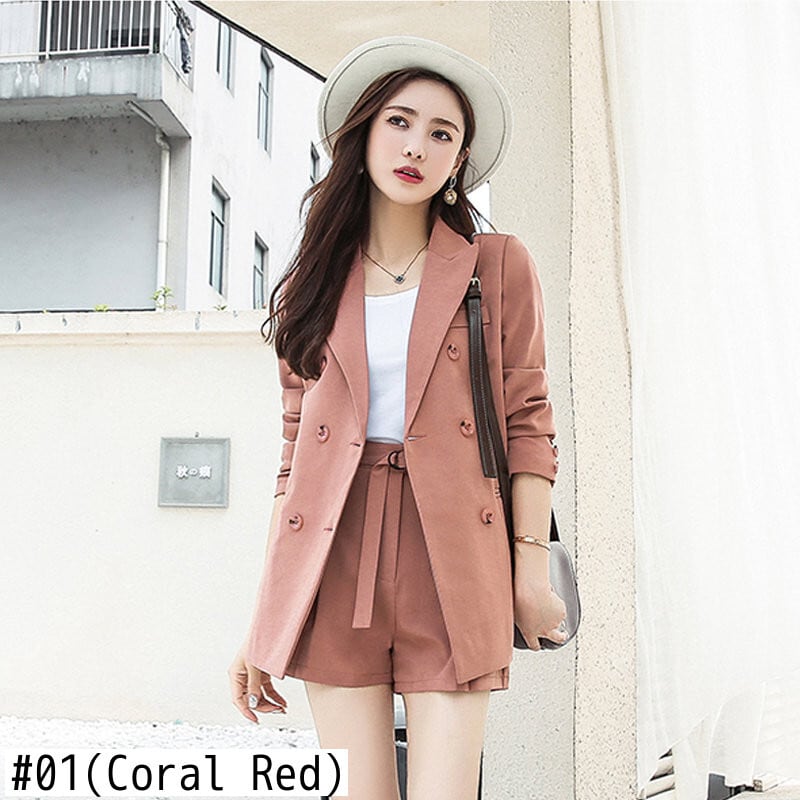 【新作】【送料無料】 2ピースセットショートスーツノッチカラーブレザージャケット&サッシショーツ女性パンツスーツWear to Work Suits 2018 ブルマー 12b156788580077