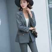 【新作】【送料無料】 女性ストライプパンツスーツOLレディリベットジャケットブレザー&ウエスト足首丈パンツ衣装テルノフェミニーノ 会社 学校 通勤や通学にも 12b193261866961