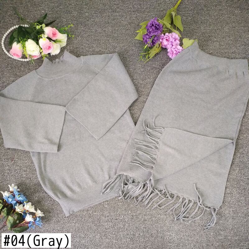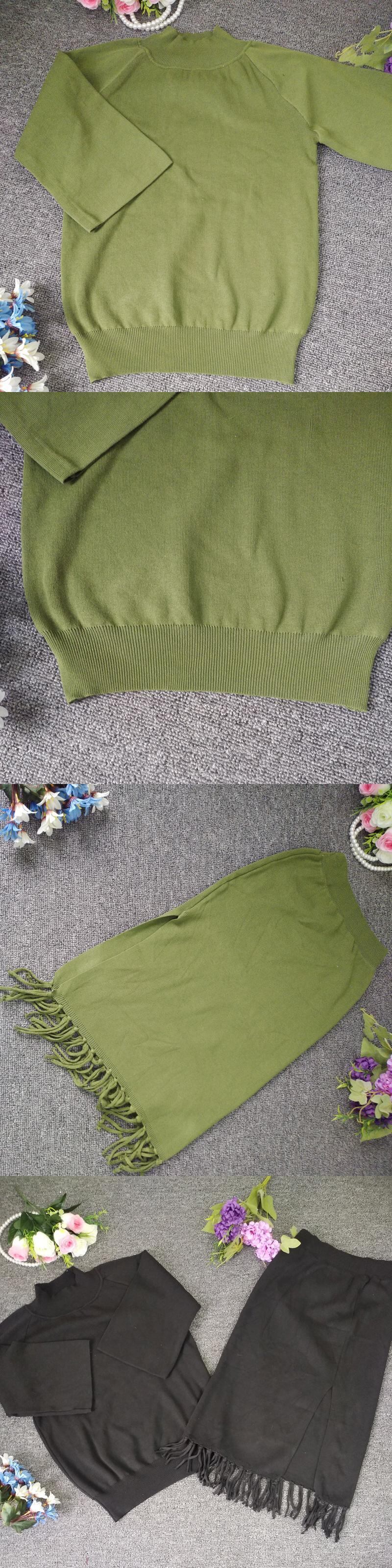 【新作】【送料無料】 2018春2ピースセットニットセーターテルスカートスーツ伸縮性ウエストスカートトラックスーツウォームプルオーバー衣装 エラスティック スプリング 春物 12b15085319437