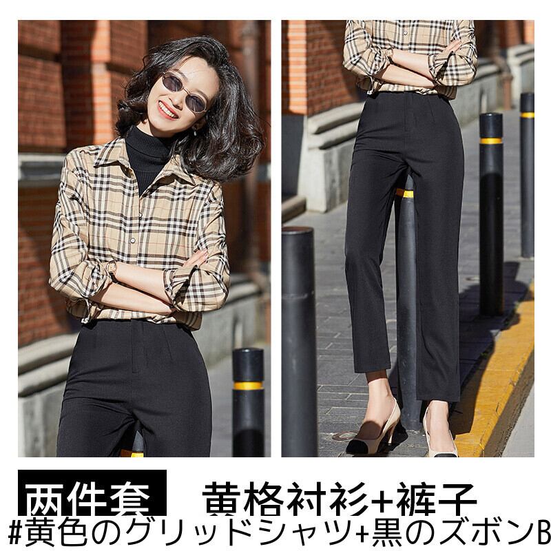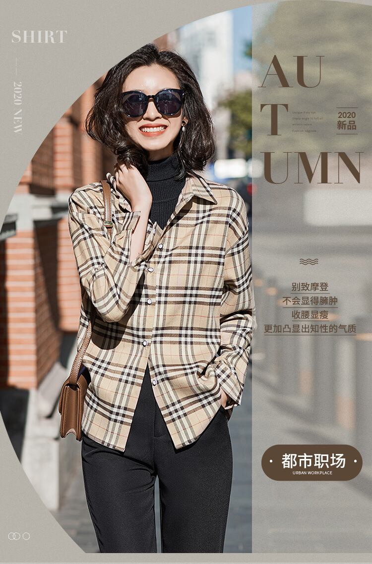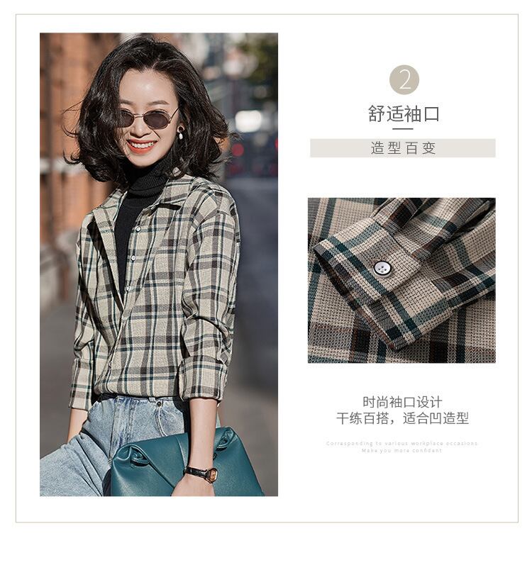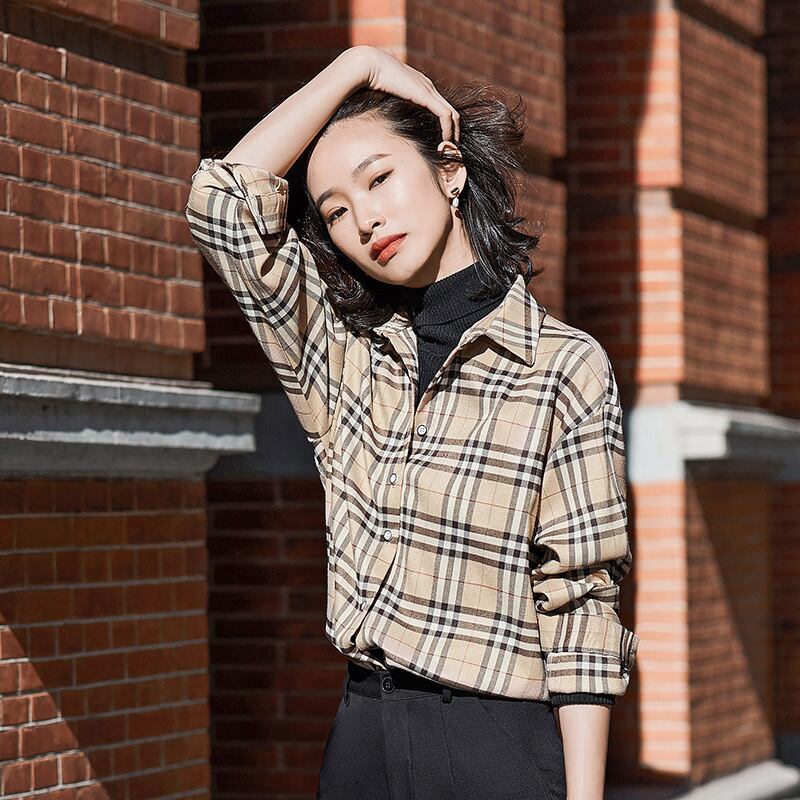 【新作】【送料無料】 本物の格子縞のシャツの女性2020新しいファッションスタイルの野生の春と秋のルーズレトロな香港スタイルの長袖シャツ-アリババ ロング スプリング 春物 オータム 秋物 12b275614834051