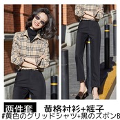 色:グリーングリッド,黄Ge,緑のグリッドシャツ+黒のズボンB016,黄色のグリッドシャツ+黒のズボンB016
