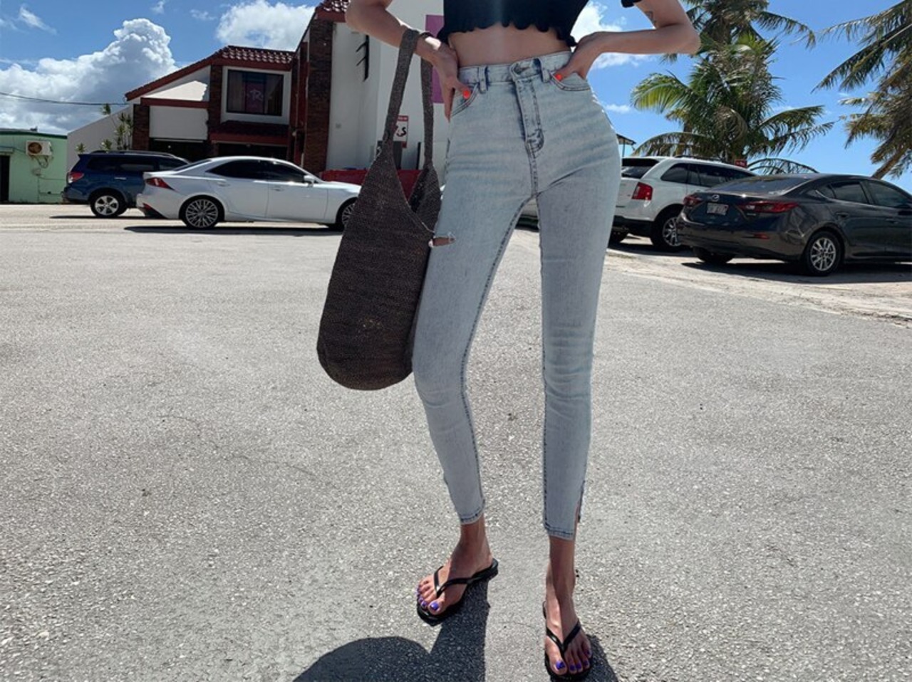 【新作】【送料無料】 ストリートウェアライトブルーウエストストレッチスキニーレディースジーンズパンツスプリットカフリップドホールペンシルジーンズ2019レディースパンツ 12b184174235803