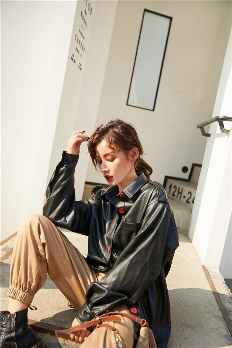 【新作】【送料無料】 BGTEEVERヴィンテージストリートシングルブレストレディースPUレザージャケットブラックフェイクレザージャケットウィンターコート2019 冬物 ファー ビンテージ 12b163481289349