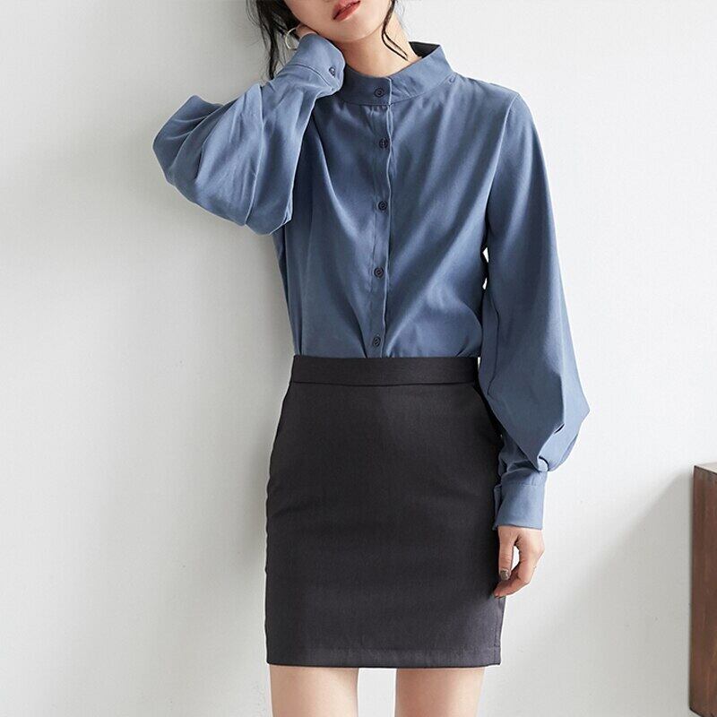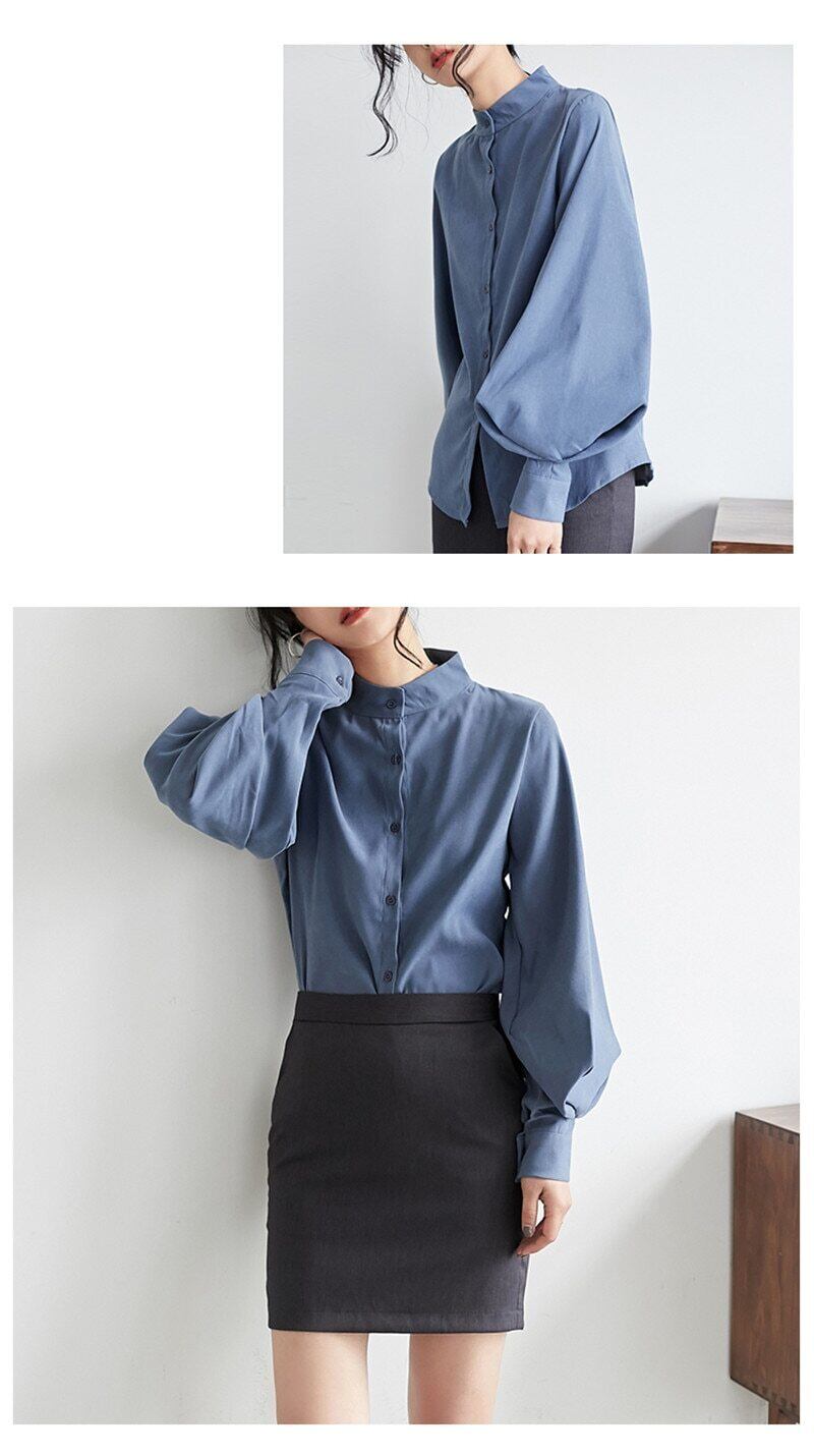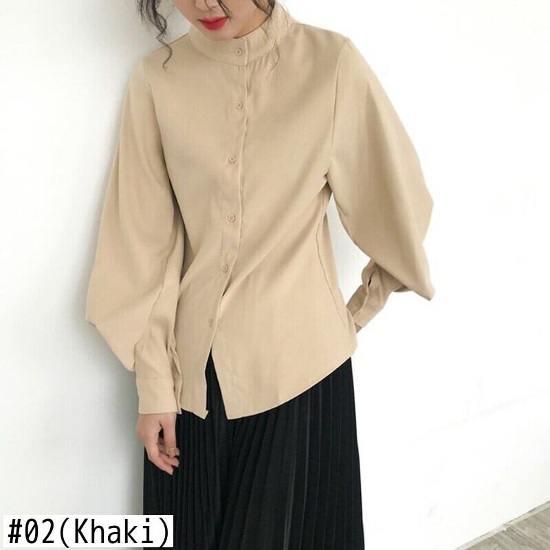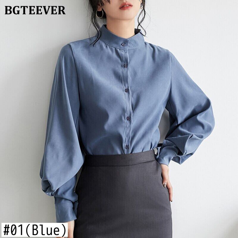 【新作】【送料無料】 BGTEEVERヴィンテージルースシックウィメンズシャツ2019ランタンスリーブシャツブラウススタンドカラーシングルブレストシャツトップスファム フェミニン ビンテージ 12b160531897261
