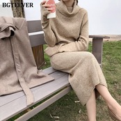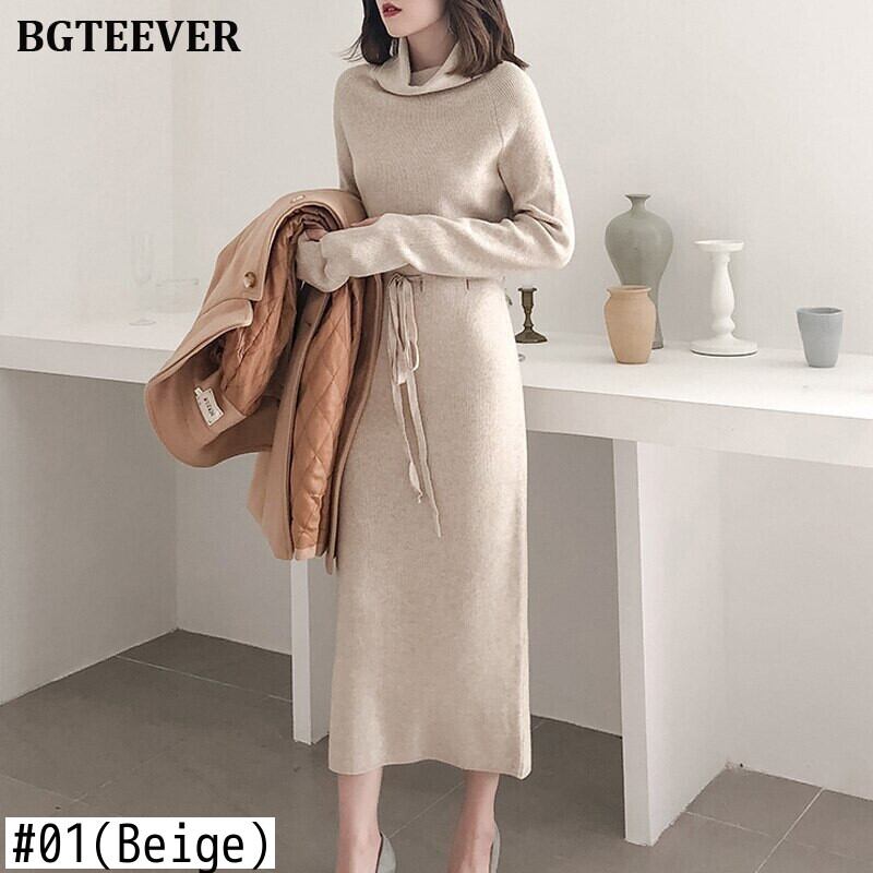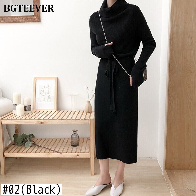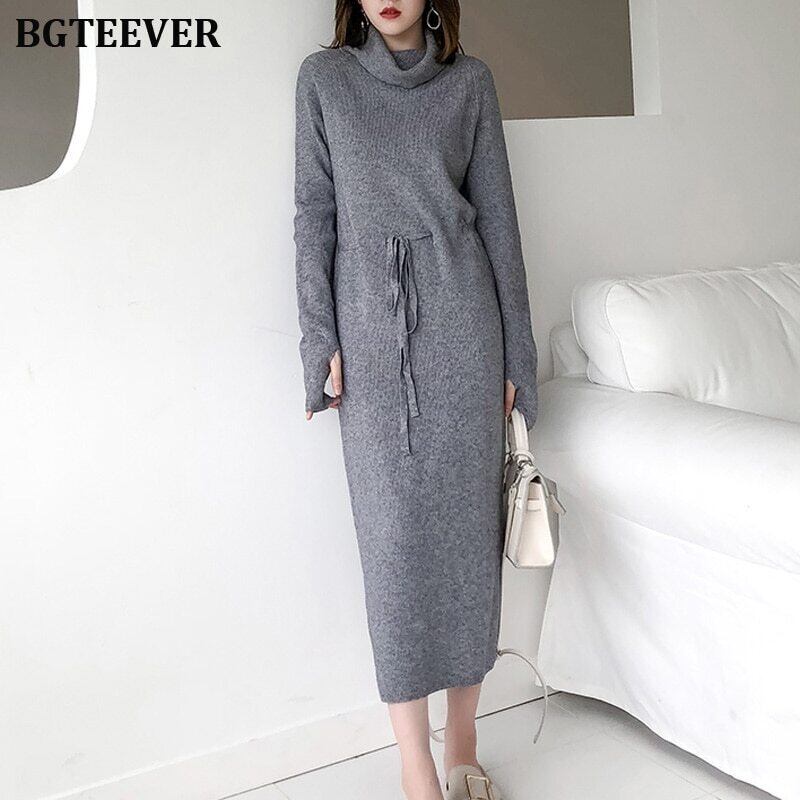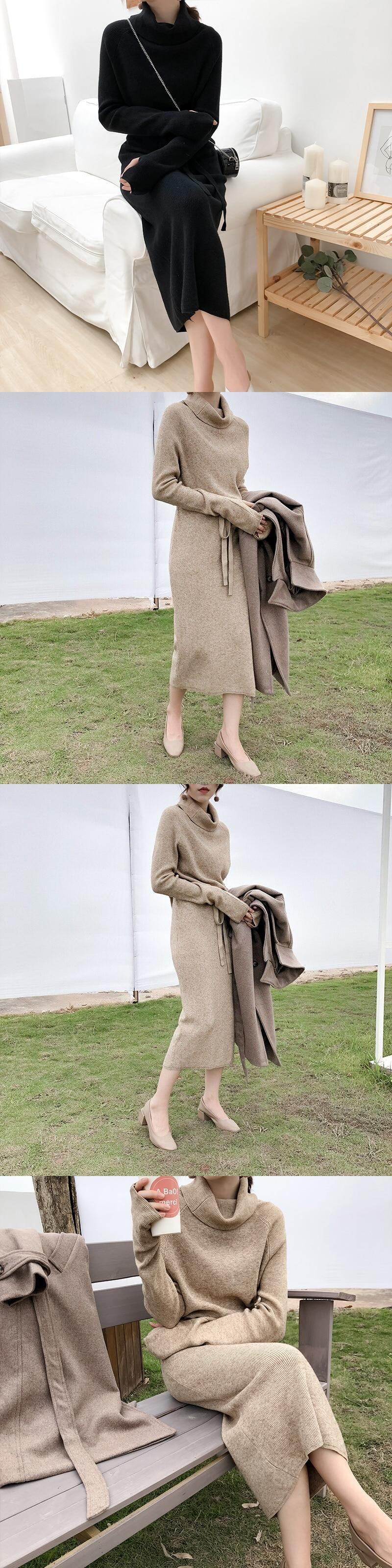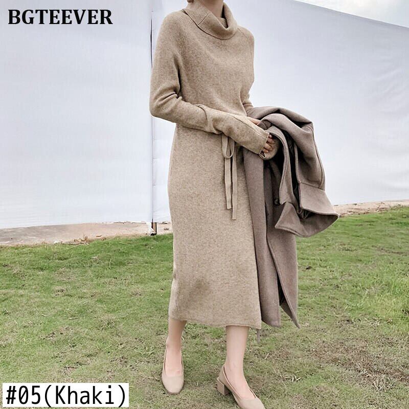 【新作】【送料無料】 秋冬女性セータードレスタートルネックフルスリーブレースアップウエスト女性ニットVestidosミドル丈ニットドレス2019 オータム 秋物 ウィンター 冬物 12b117250598093