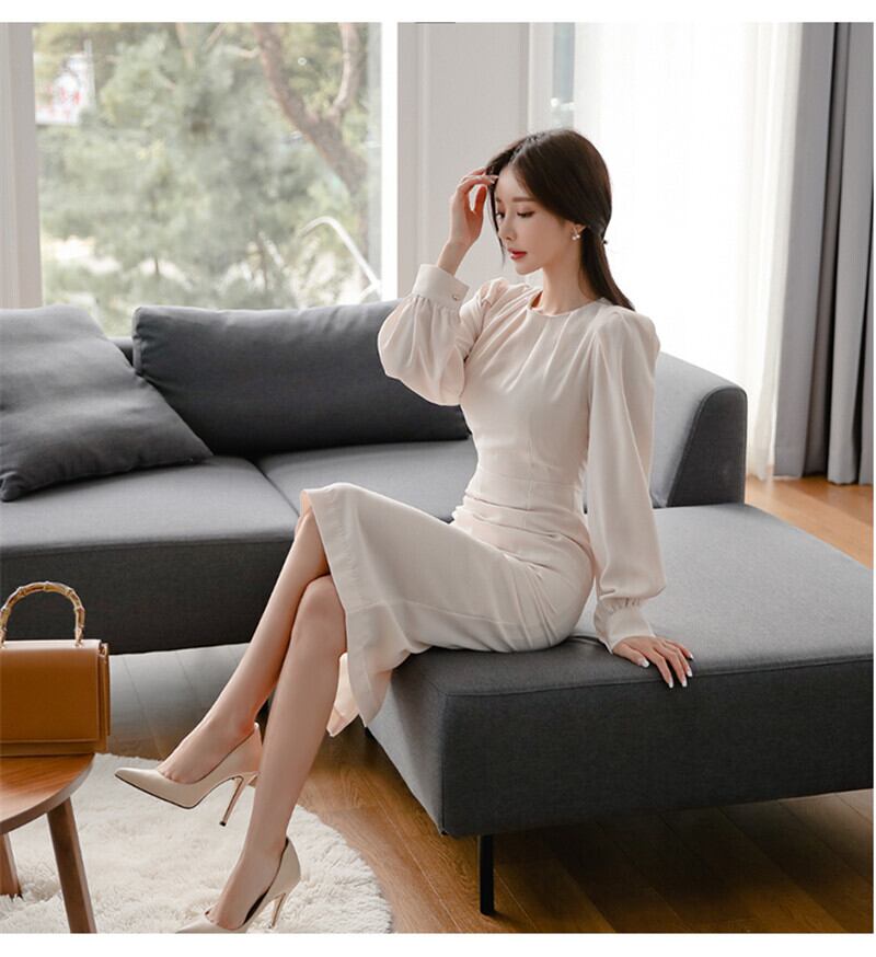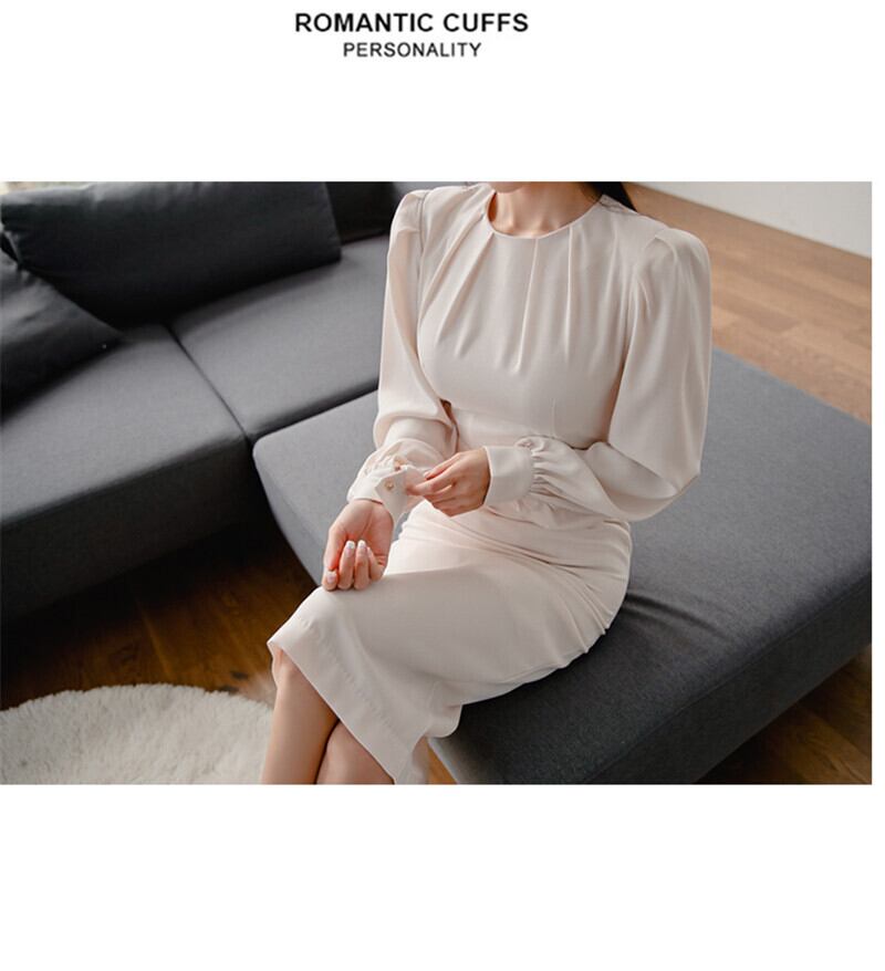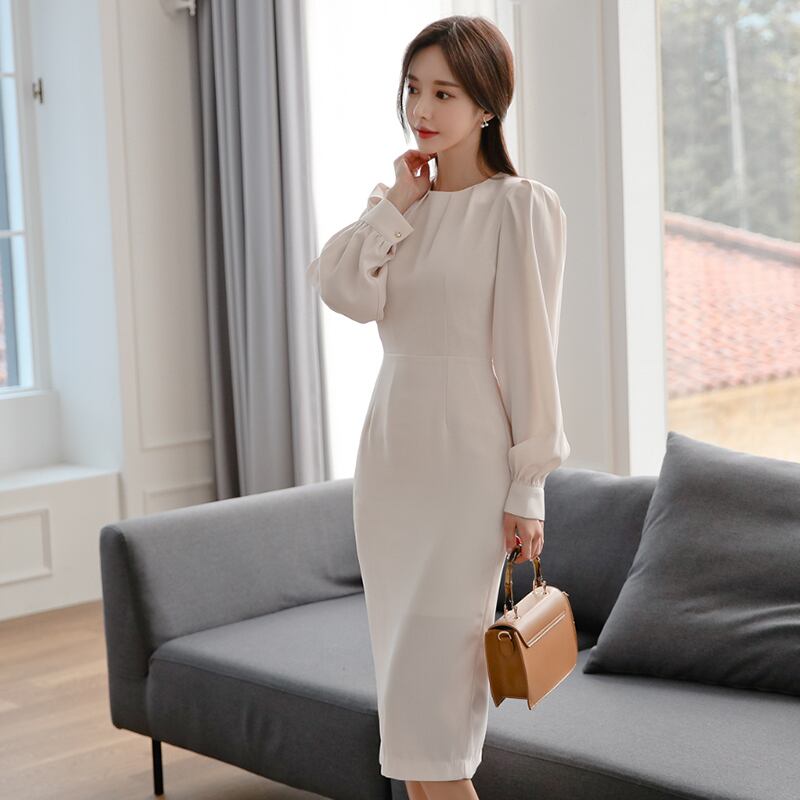 【新作】【送料無料】 BGTEEVEROネックシャーリングドレープスリムウエストレディースドレスシースフルスリーブドレスペンシルミッドカーフ 12b12138164435