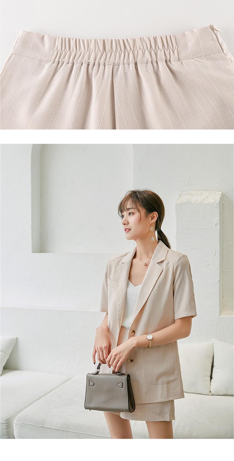 【新作】【送料無料】 コットン&リネンレディースストライプパンツスーツシングルブレストポケットブレザージャケット&ホットショーツサマー2点セット 夏物 ブルマー 12b188389795525