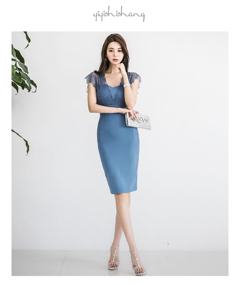 【新作】【送料無料】 2019セクシーなVネックレースパッチワークサマードレスボディコン鉛筆女性ドレスウエスト女性パーティーvestidosde verano 夏物 12b155934394450