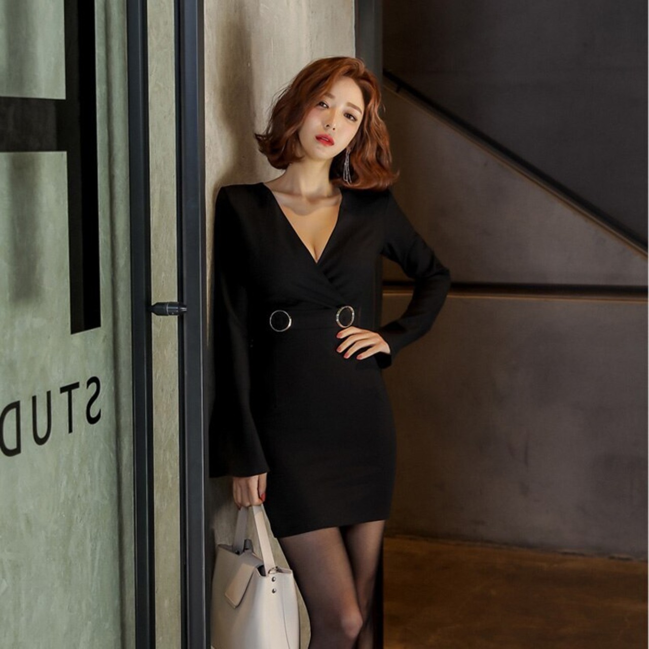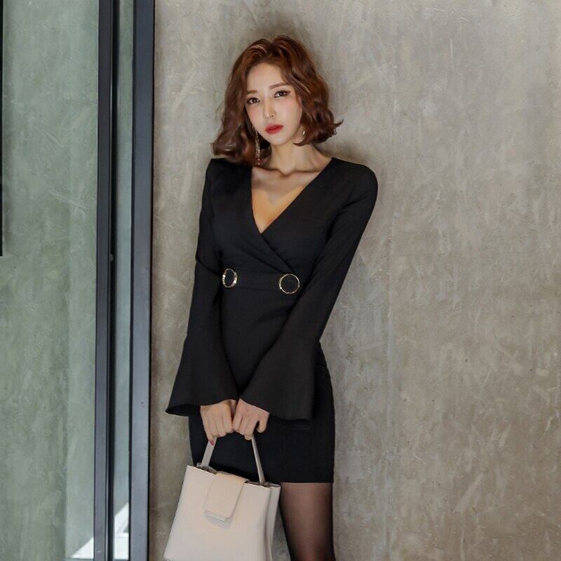 【新作】【送料無料】 BGTEEVERVネックウエストブレストレディースドレスシースフルフレアスリーブドレスヒップパッケージ 12b180852980537