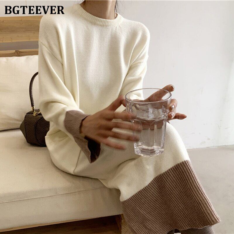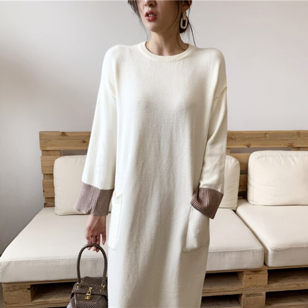 【新作】【送料無料】 BGTEEVERシックなヒットカラー秋冬ドレスルーズレディースセータードレスシックンポケットジャンパードレスミディヴェスティドス2019 オータム 秋物 ウィンター 冬物 12b183122177458