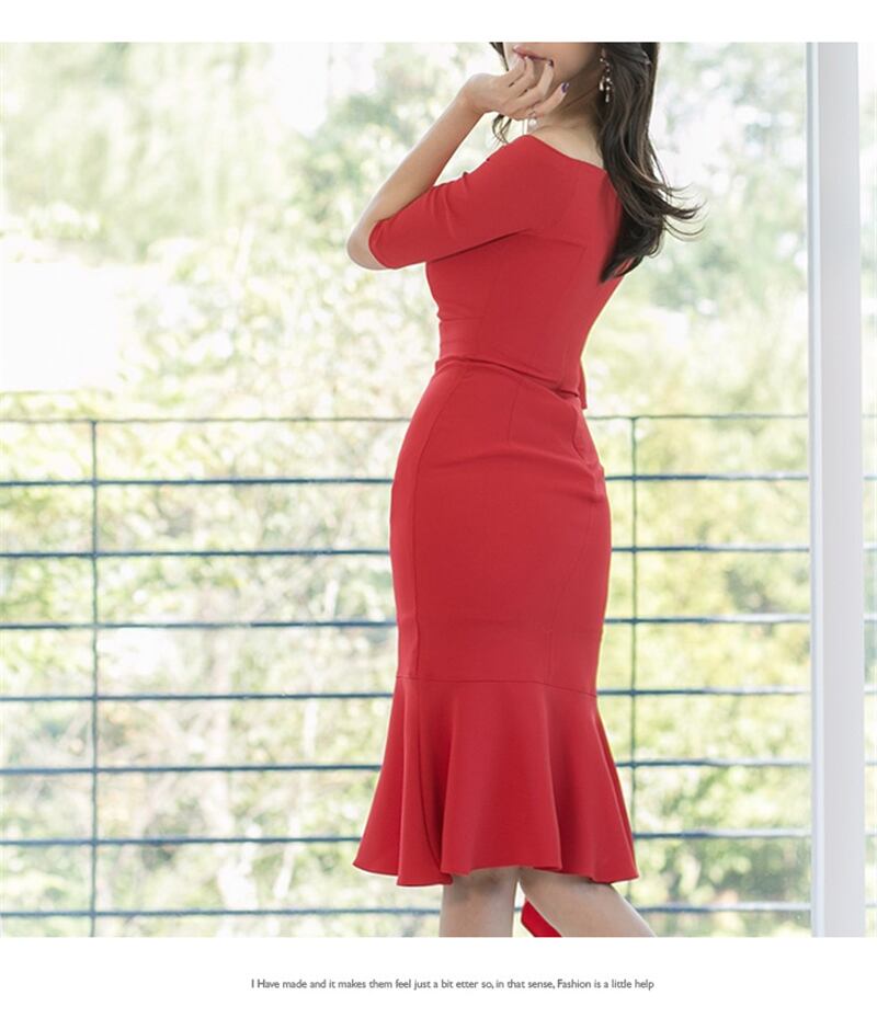 【新作】【送料無料】 BGTEEVERスリムセクシーな赤い女性のドレスフリルスラッシュネックドレス不規則なヒップパッケージマーメイド レッド ラッフル 12b121743121949