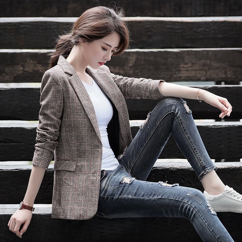 【新作】【送料無料】 Real s2020秋冬新チェック柄スモールスーツジャケットレディースカジュアルファッションネットレッドスーツレディースジャケットバージョン-アリババ オータム 秋物 ウィンター 冬物 12b286332652044