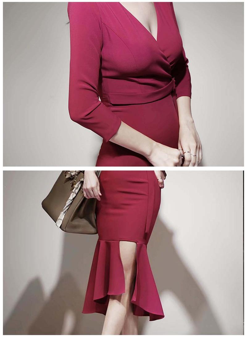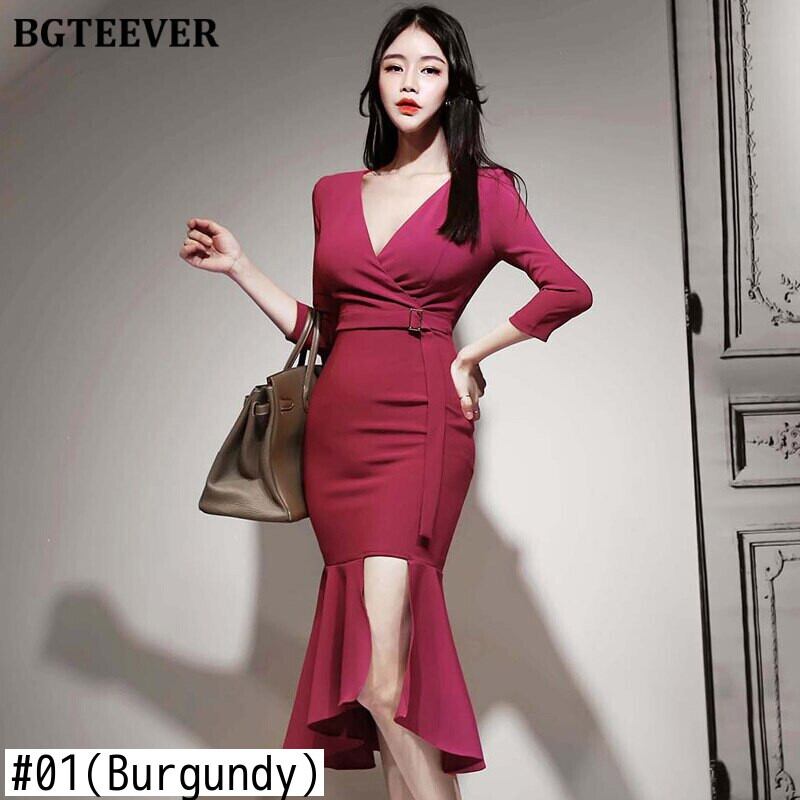 【新作】【送料無料】 BGTEEVERセクシーなVネックの女性のドレス-ストリートサッシ3/4スリーブスプリットマーメイドドレスボディコンスリム 12b146006488464