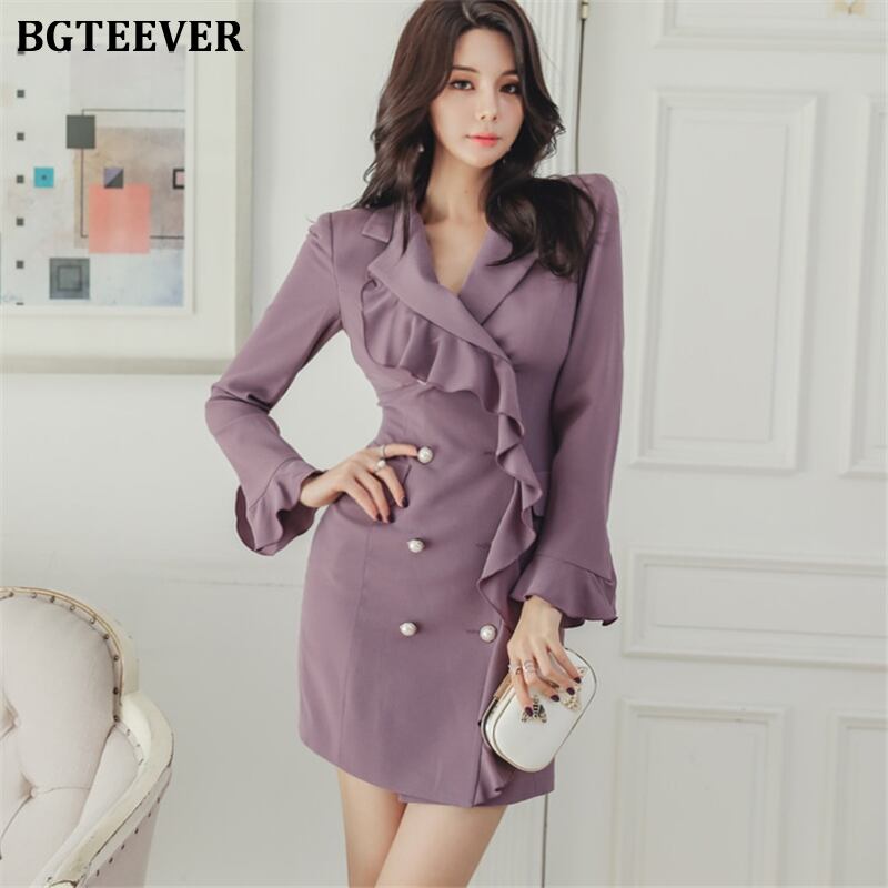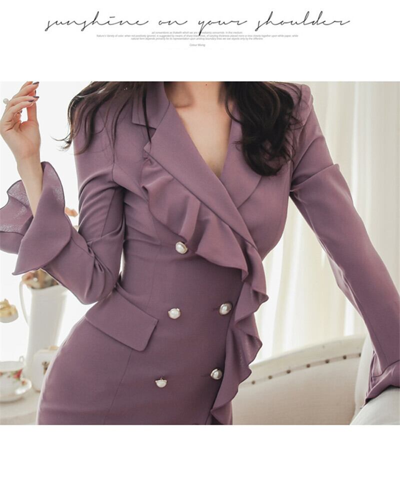 【新作】【送料無料】 BGTEEVERフルスリーブボディコンレディースドレスセクシーフリルダブルブレストドレスミニドレスノッチカラー ラッフル 12b126291794777