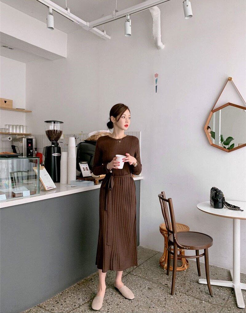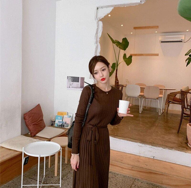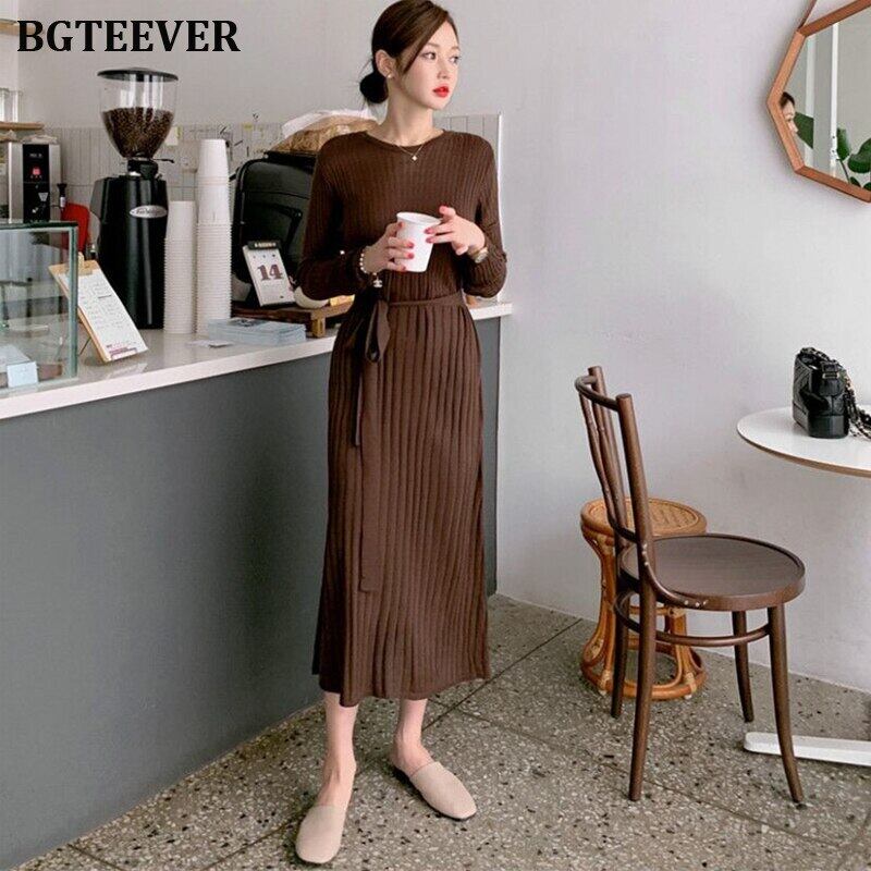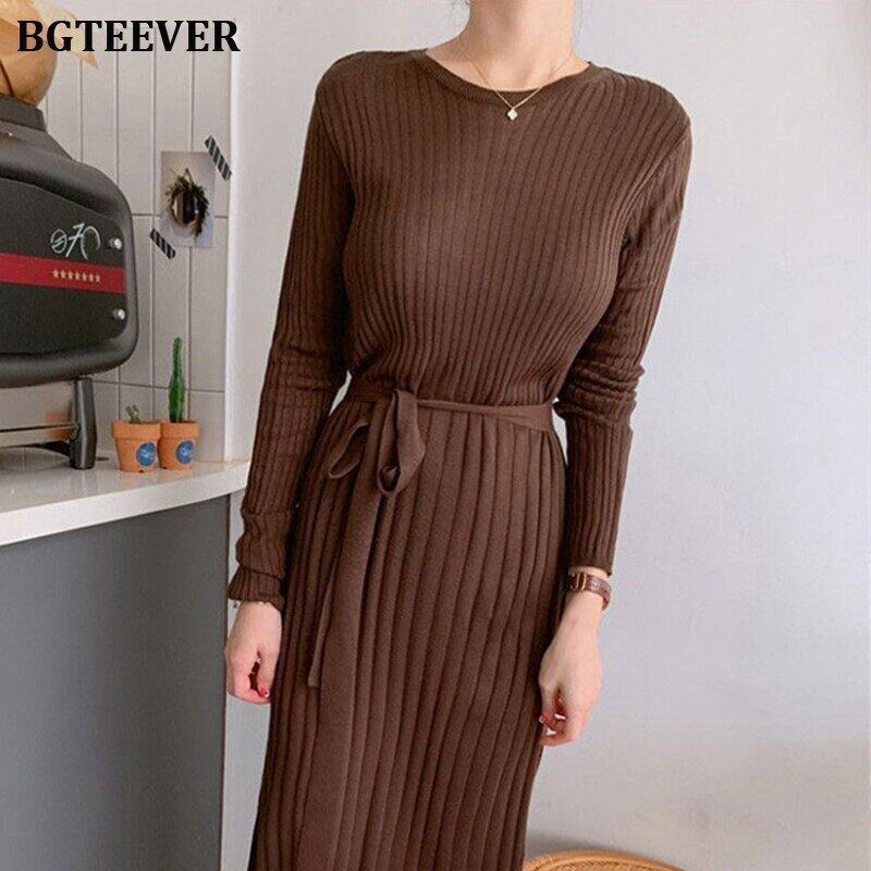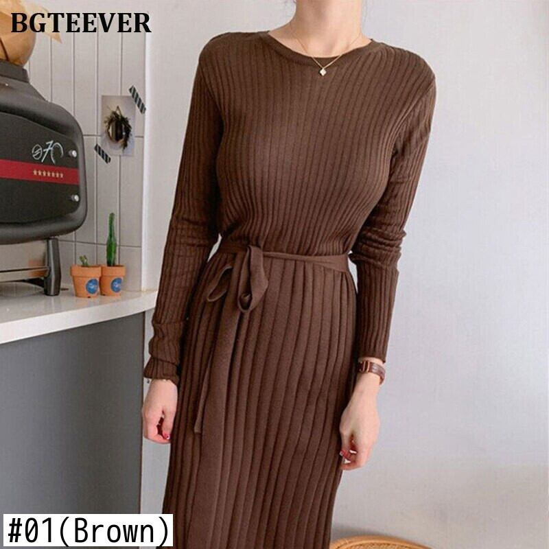 【新作】【送料無料】 ロングAラインの女性のセータードレスOネックレースアップニットドレス2019秋冬暖かいプルオーバーセーターVestidos オータム 秋物 ウィンター 冬物 12b128039447078