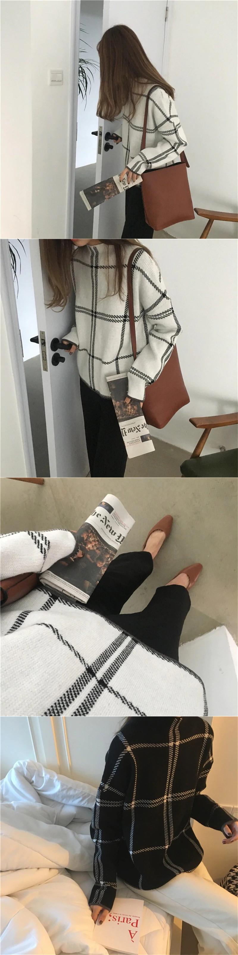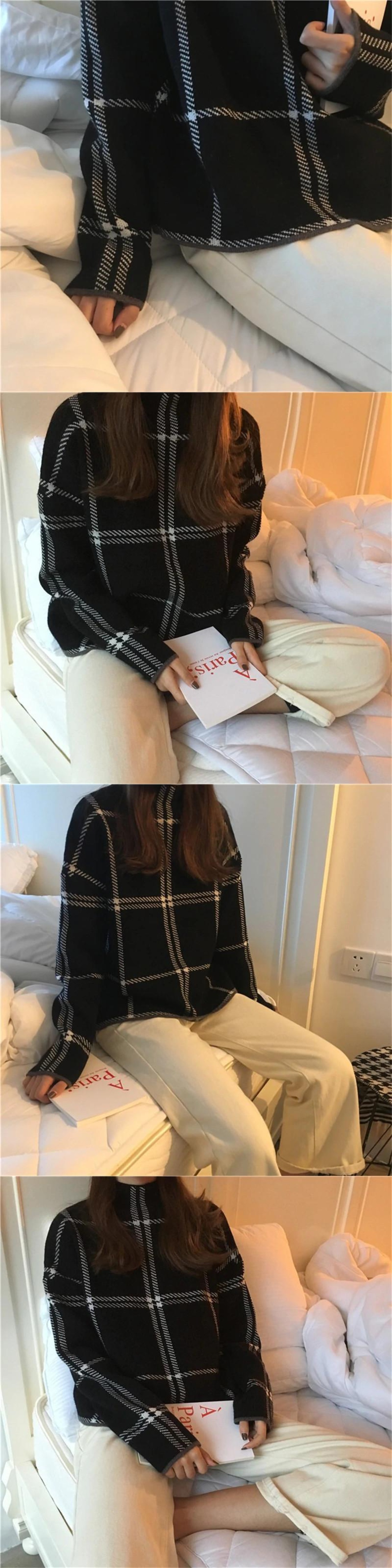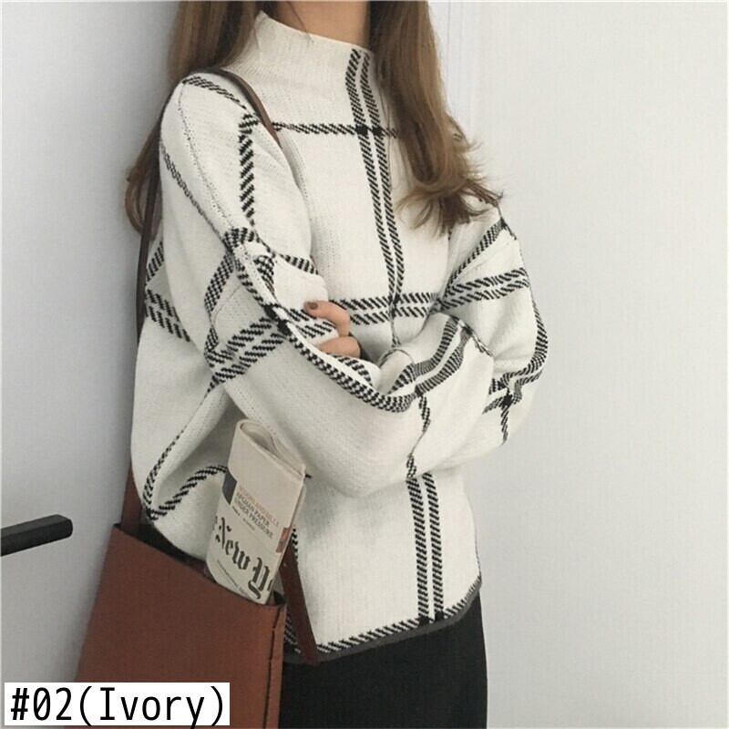 【新作】【送料無料】 2020秋冬格子縞の女性セーターハーフタートルネック暖かいミニマリスト編みプルオーバーニットトップスジャンパー オータム 秋物 ウィンター 冬物 12b113305290271